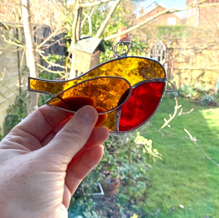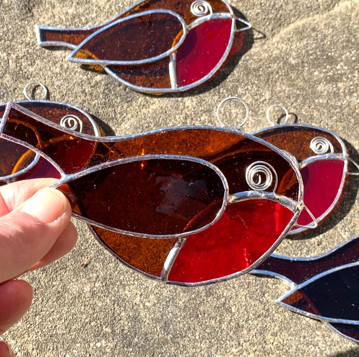 I have a lovely little hanging robin which gave me the idea for this suncatcher and someone recently asked for a robin as she has trouble with birds flying into her window.
