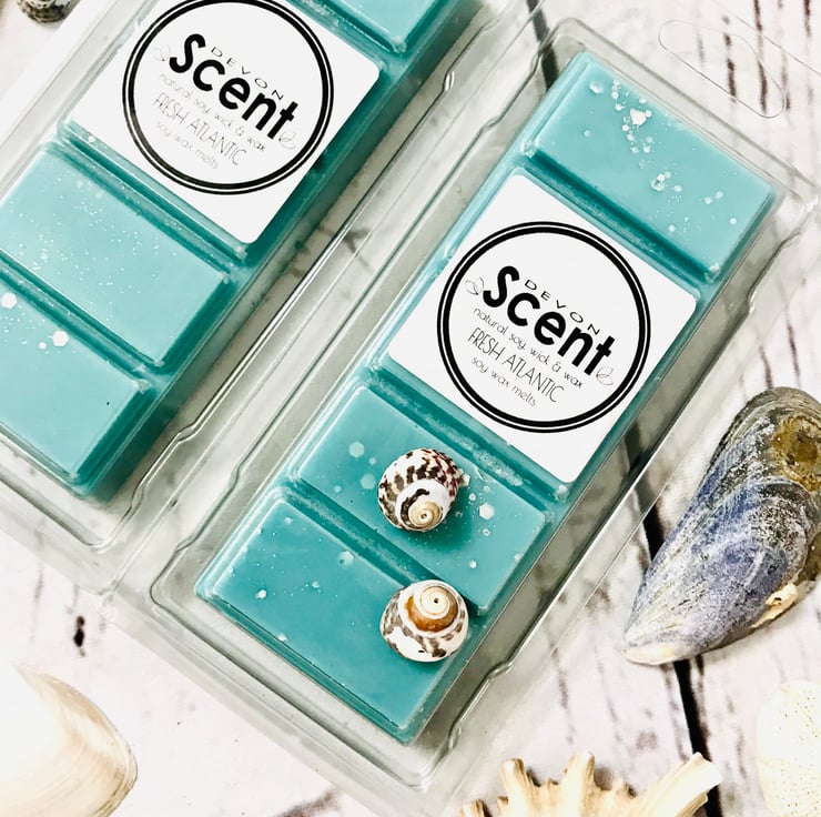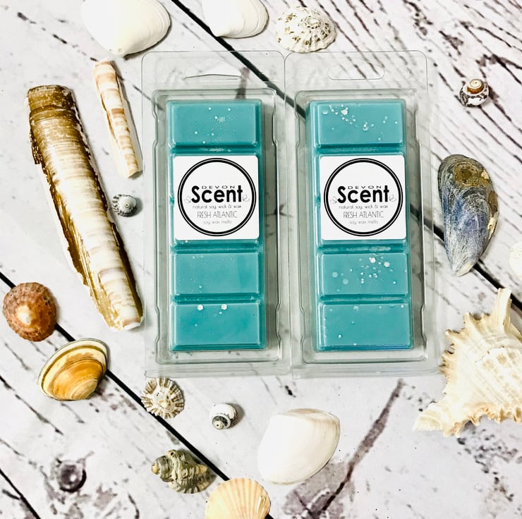 Our highly fragranced Fresh Atlantic Snap Bar Wax Melts have a fruity accord with notes of apple, pear and melon, twisted with green privet leaf and sea moss, on a delicate heart of white flowers, including roses, Jasmin, heliotrope and violet.