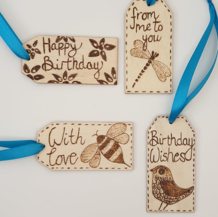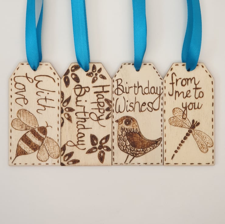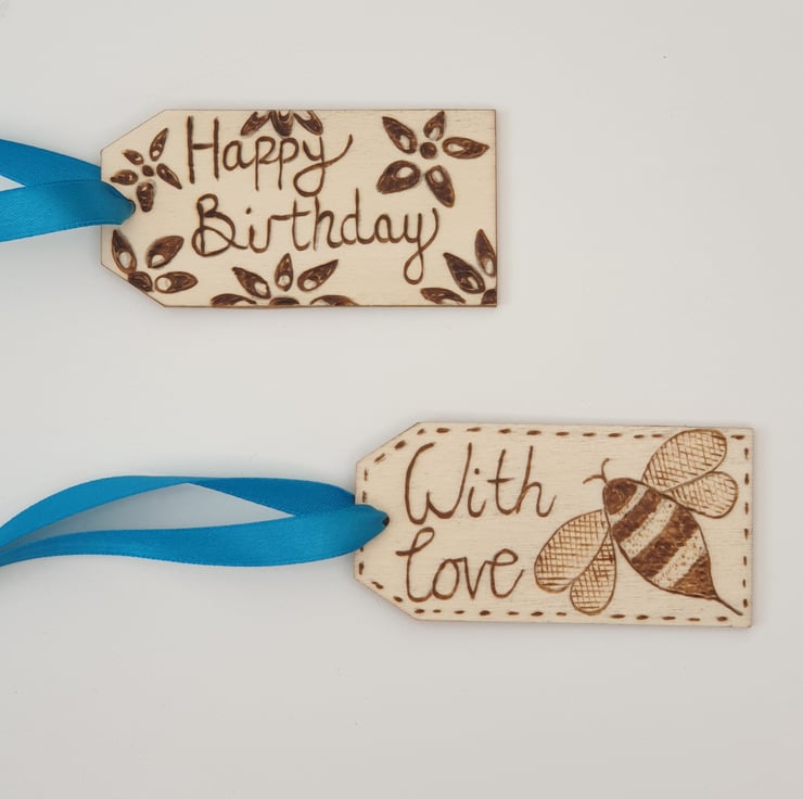 I love the natural beauty of wood and the effects you can achieve using pyrography. These tags will add that little extra to your special present.