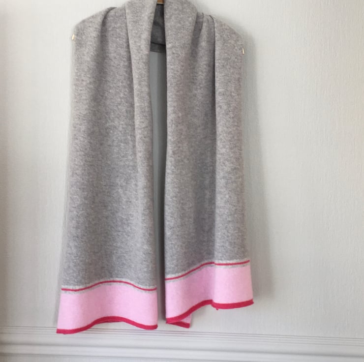Shawl Scarf Wrap luxuriously soft merino lambswool pearl grey blush pink border