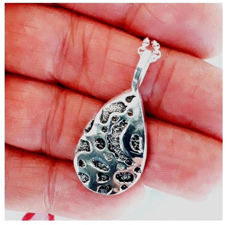 Handmade using the sand casting into delft clay tecqnique, by firstly creating the shape and the design of the piece i wanted to achieve, impressing that into the delft clay to give an impression before pouring in the moltem silver.