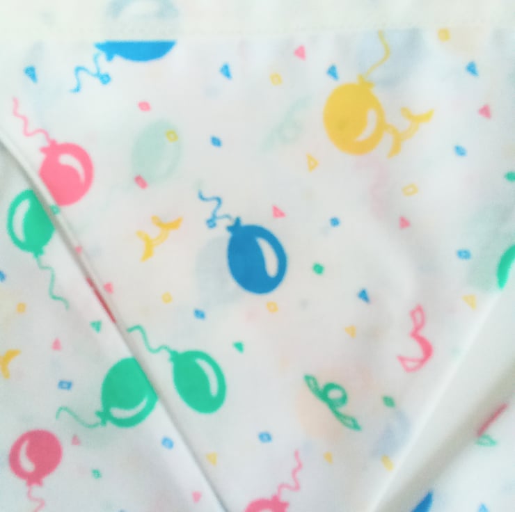 The flags feature balloons and confetti, the second photo shows a better example of the colours.