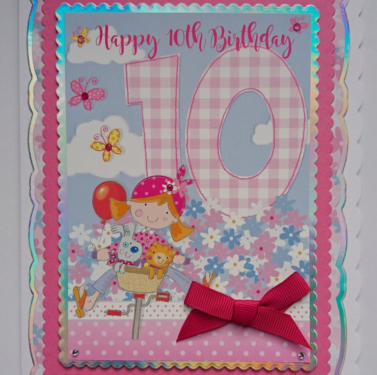 This is a lovely luxury 3D handmade greeting card to send to a little girl for her 10th birthday.