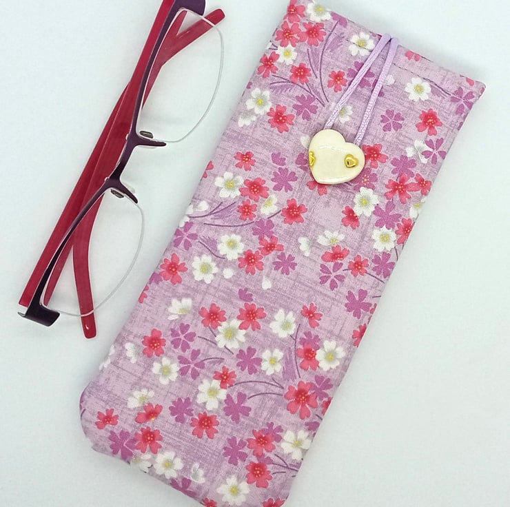 Soft quilted Glasses case in cotton measuring 18.5cm x 8cm.