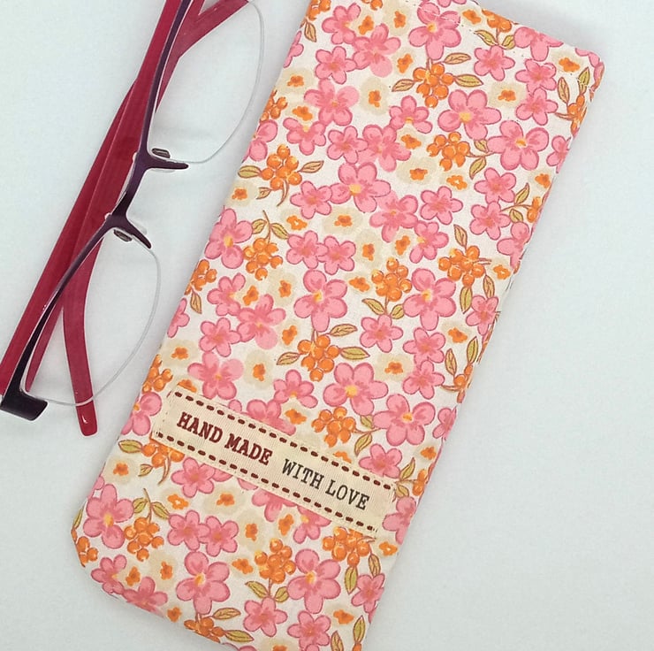 It is wadded to protect your glasses and features a handmade with love label on the back. Lining is in pink cotton, and