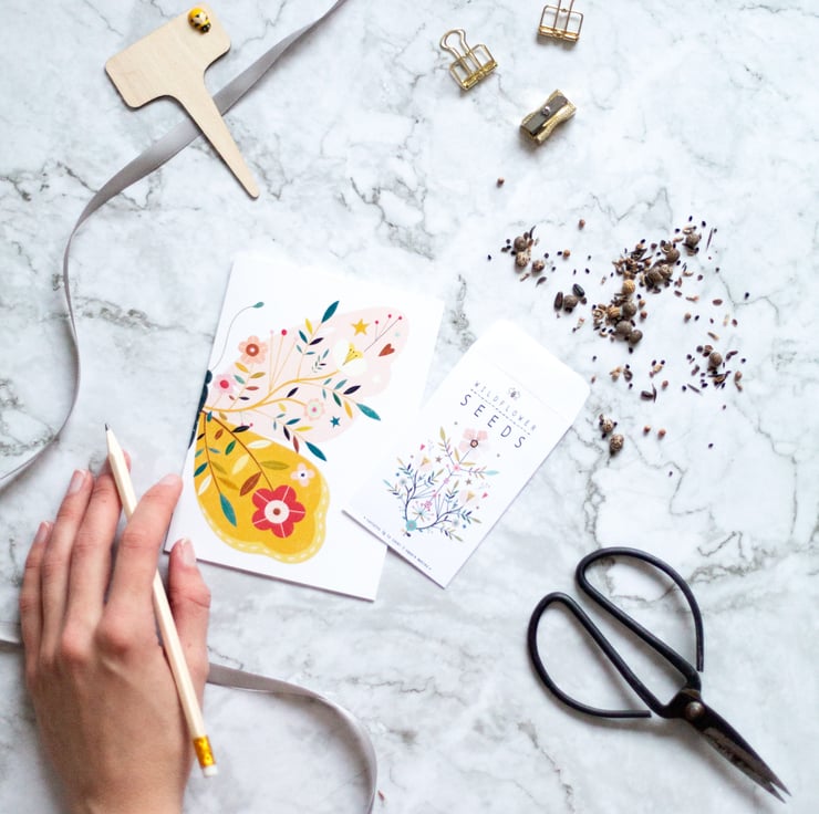 Enclosed with the card is a packet of wildflower seeds (enough to cover 3 metres squared) to grow your own Butterly garden.