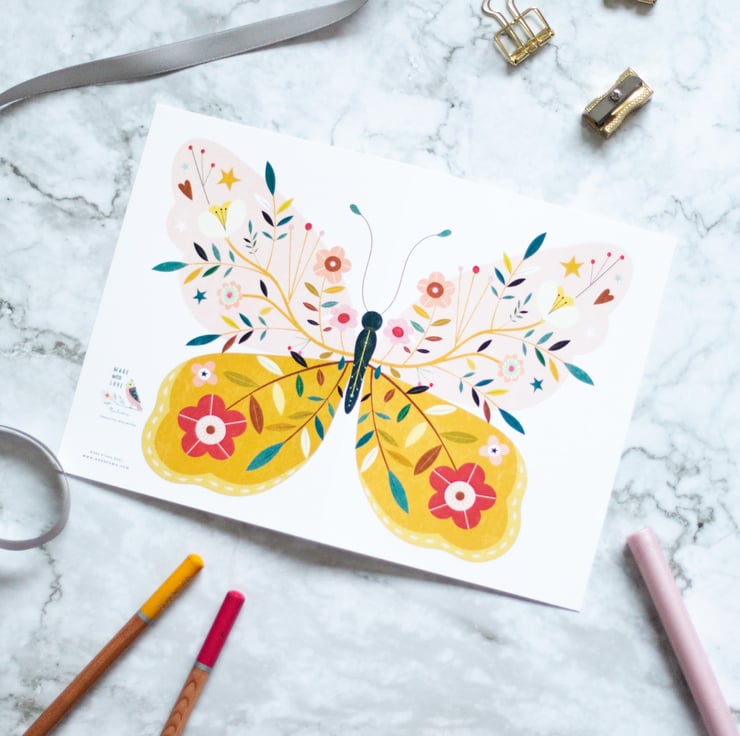 This beautiful butterfly fold-out card card has been uniquely designed by illustrator Bee Brown and has been left blank for your own, personal message and is perfect for a Mother's Day send.