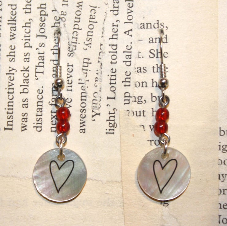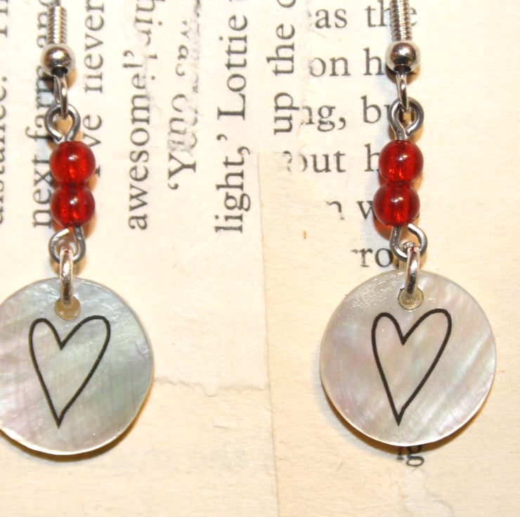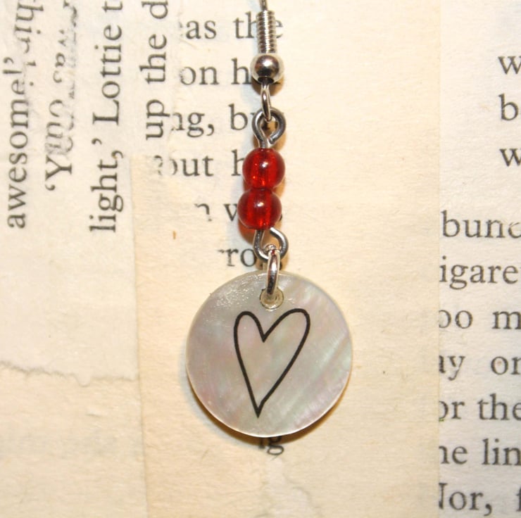 A cute little love heart has been applied to small circular shells, which hang from 2 red beads. These are a cute accessory to brighten up any outfit.