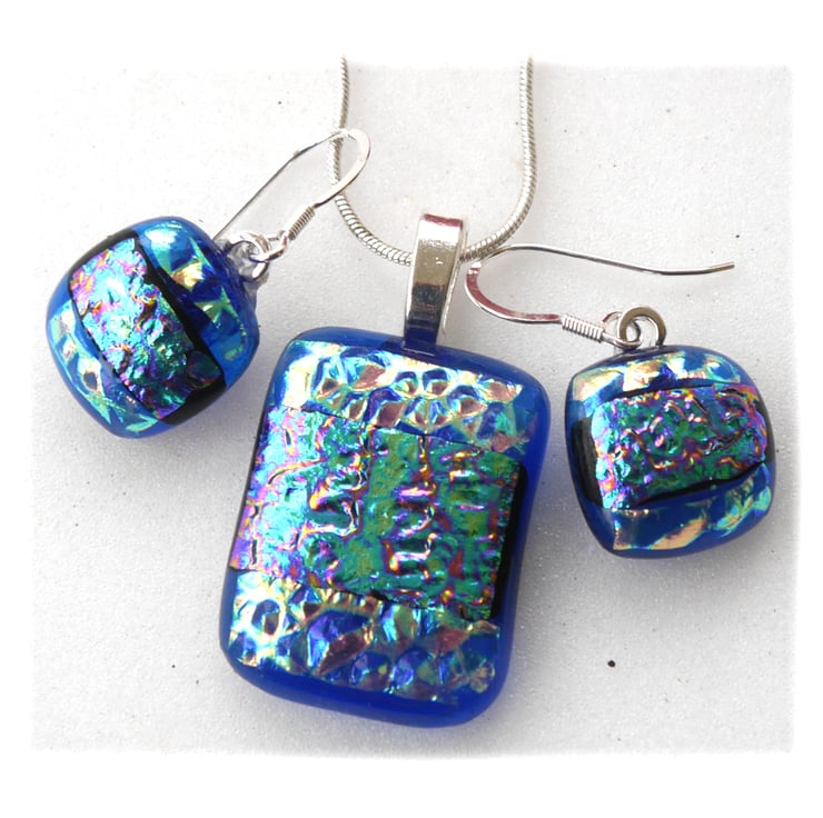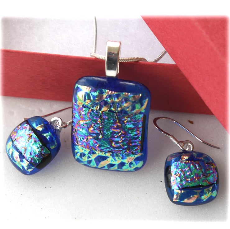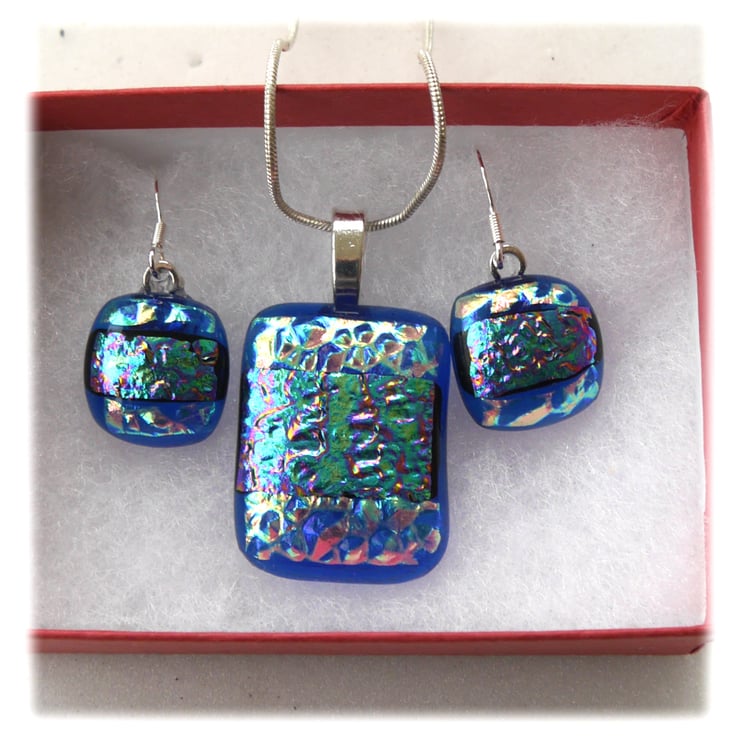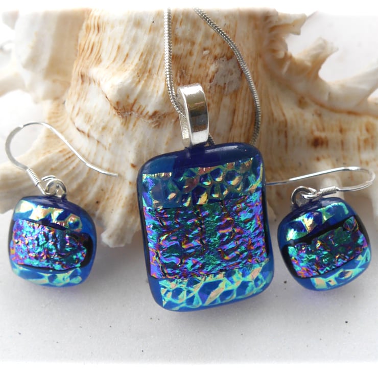 The dichroic glass cabochons for the pendant, matching earrings were handmade, by me with love.