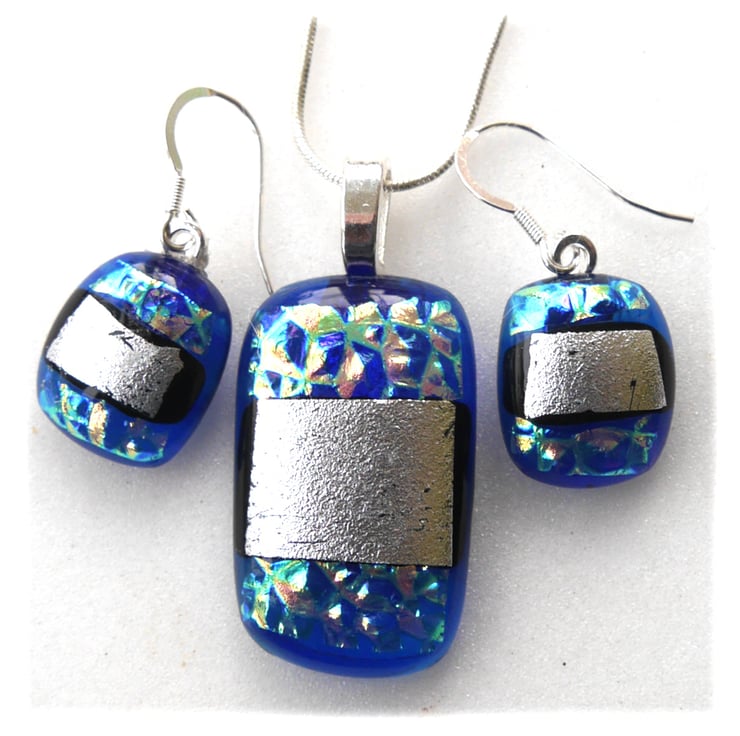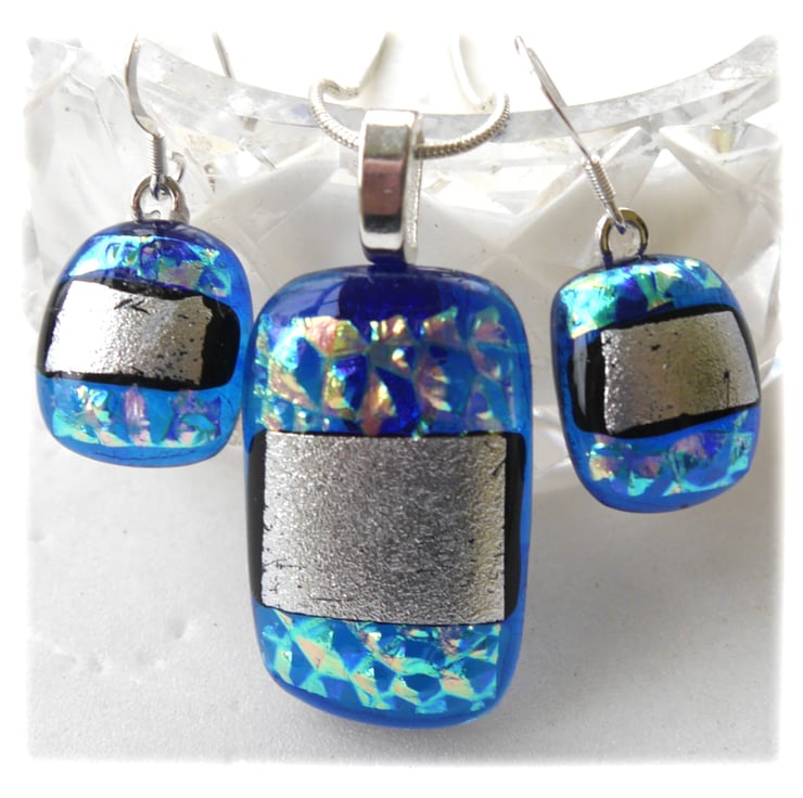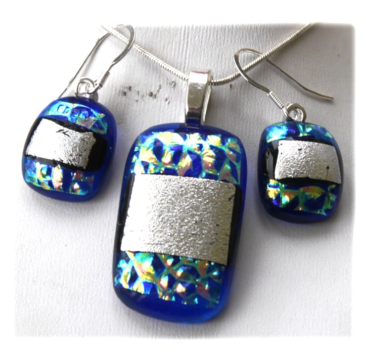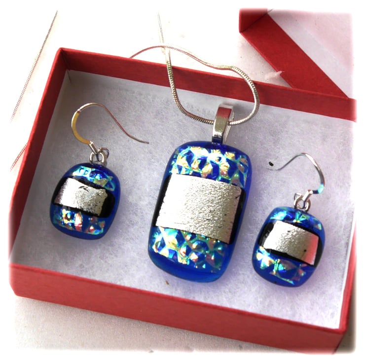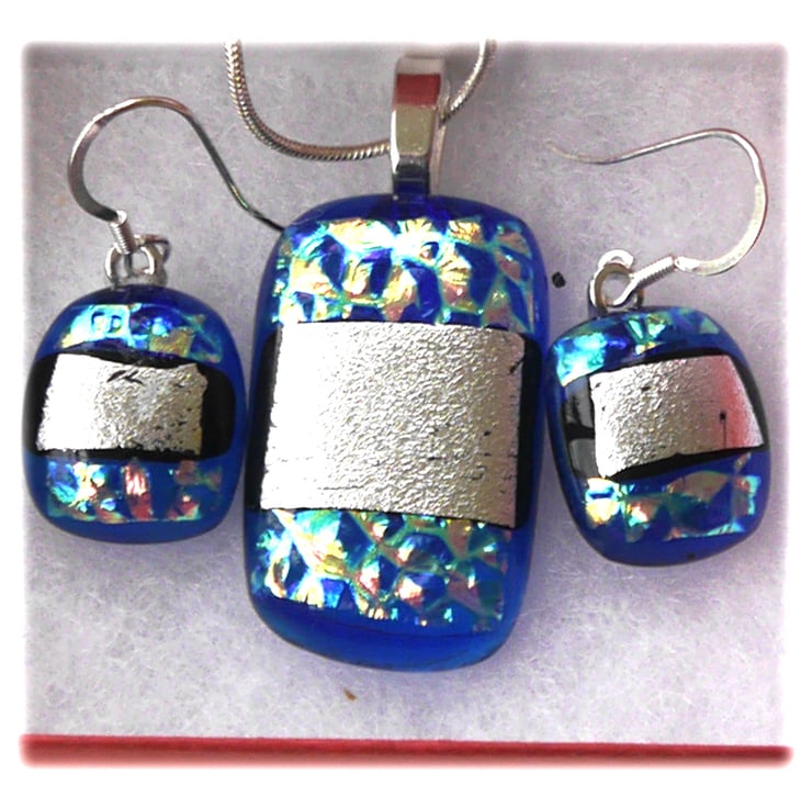 The dichroic glass cabochons for the pendant, matching earrings were handmade, by me with love.