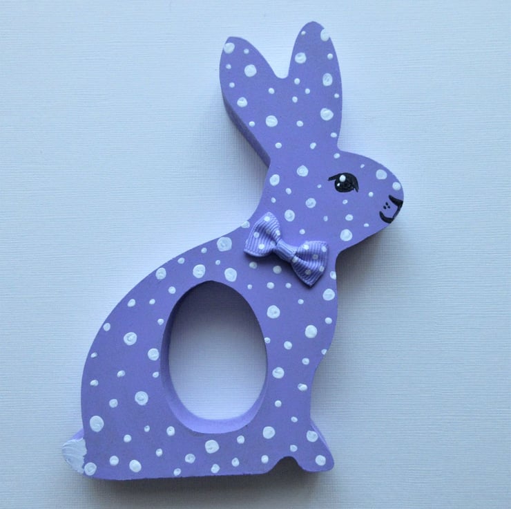 This is a freestanding MDF bunny, which holds a chocolate egg (Creme egg etc - see photos for examples of the eggs that fit).