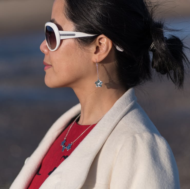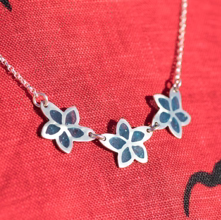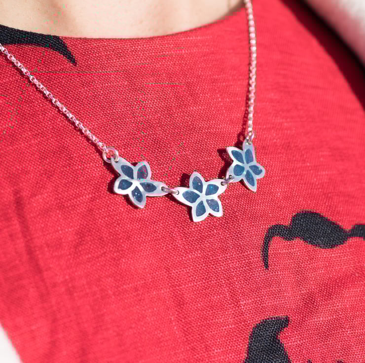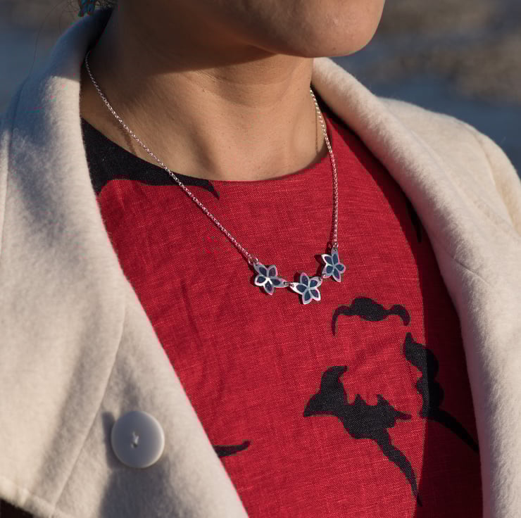 These transparent blue enamel set in solid silver is a stunning accent for a relaxed day yet smart enough and comfortable enough to wear in the office.
