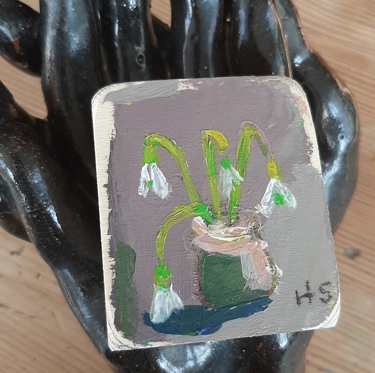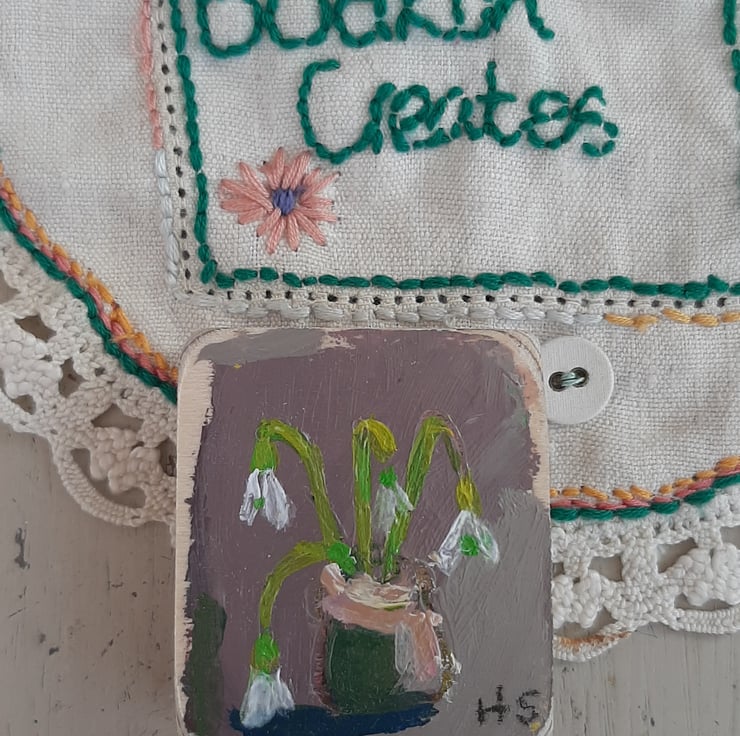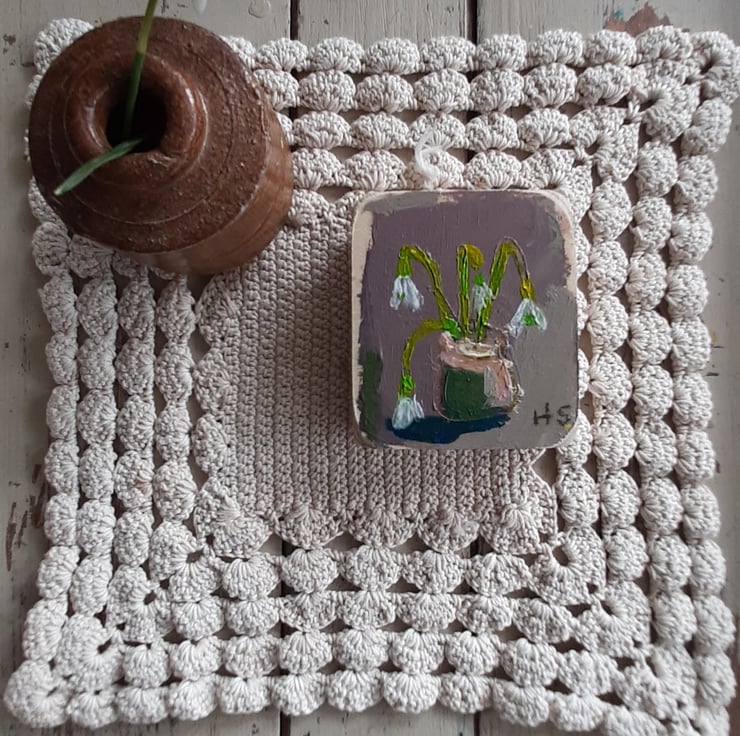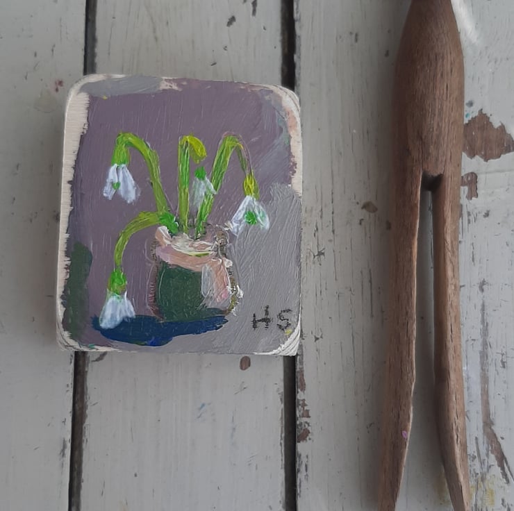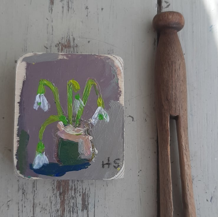 Beautiful little original painting just 5cm tall painted on reclaimed wooden blocks which I sand and give a light varnish. very sweet gift. ready to hang with hook. Signed and will gift wrap. Celebrating spring