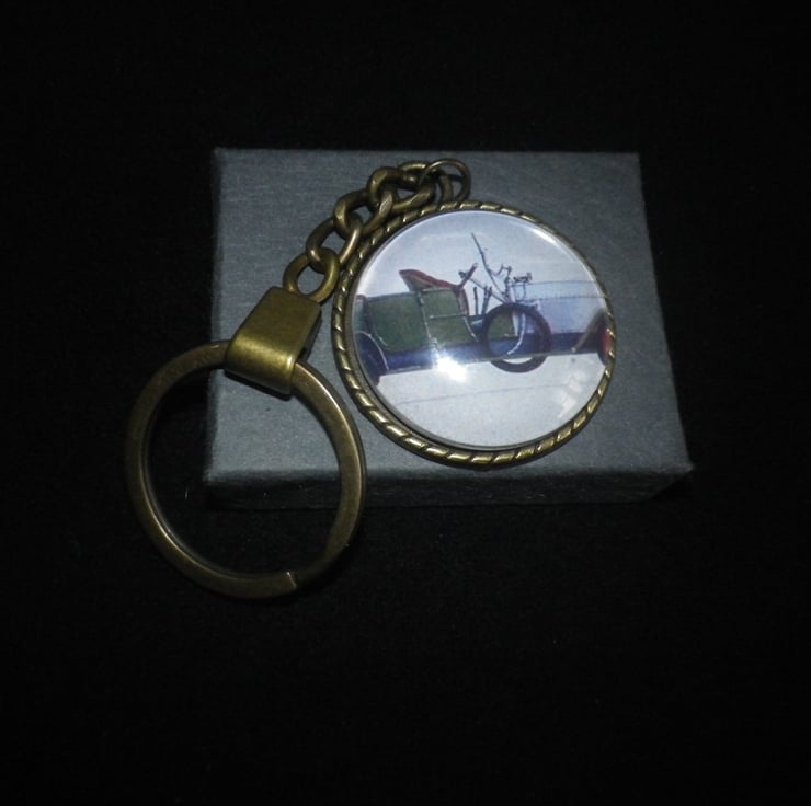 The digital images are printed on high quality 180gm professional photocard, and are mounted in a bronze vintage setting , protected by a 30mm ( 1.25" ) glass cabochon dome , and the keychains come in a neat lidded presentation
