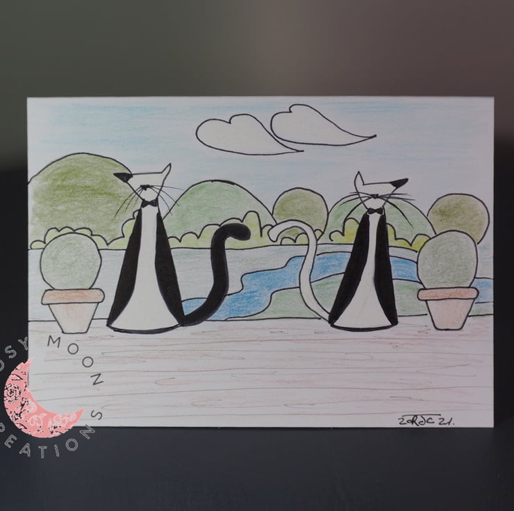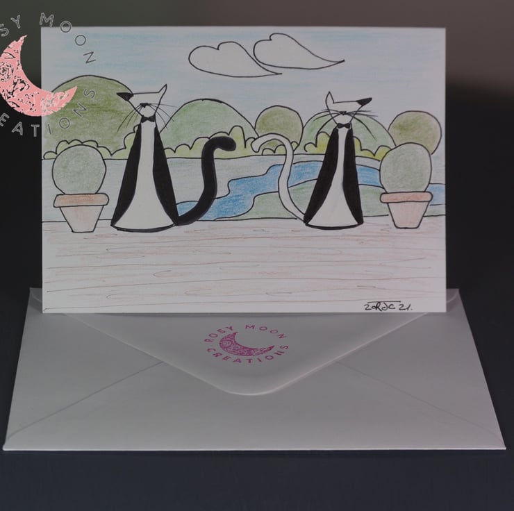 Two very dapper cats sit surveying their kingdom. A great card for any cat lover.