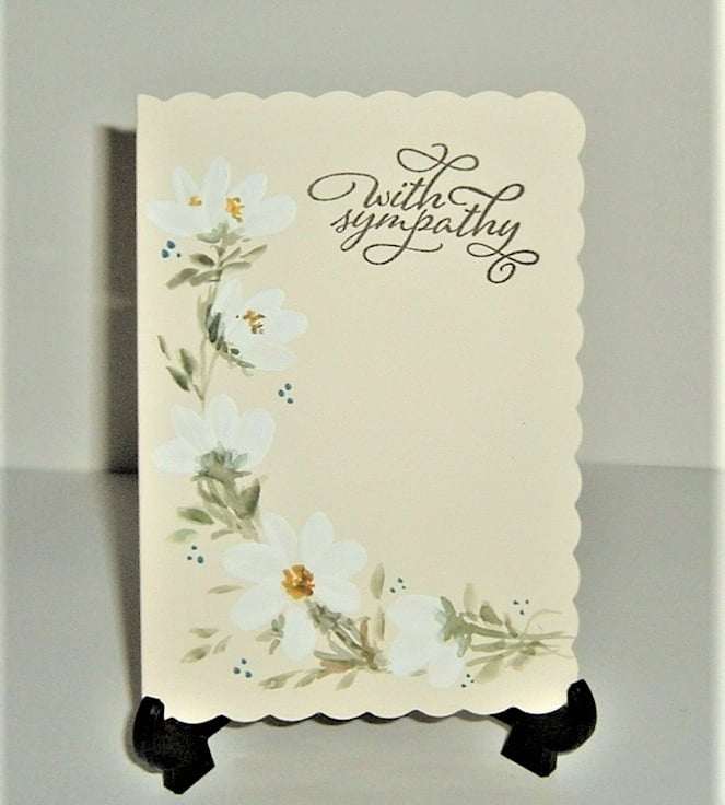 Painted using quality artist's paints on cream coloured card stock, it comes complete with a matching cream envelope in a clear polybag to protect it.