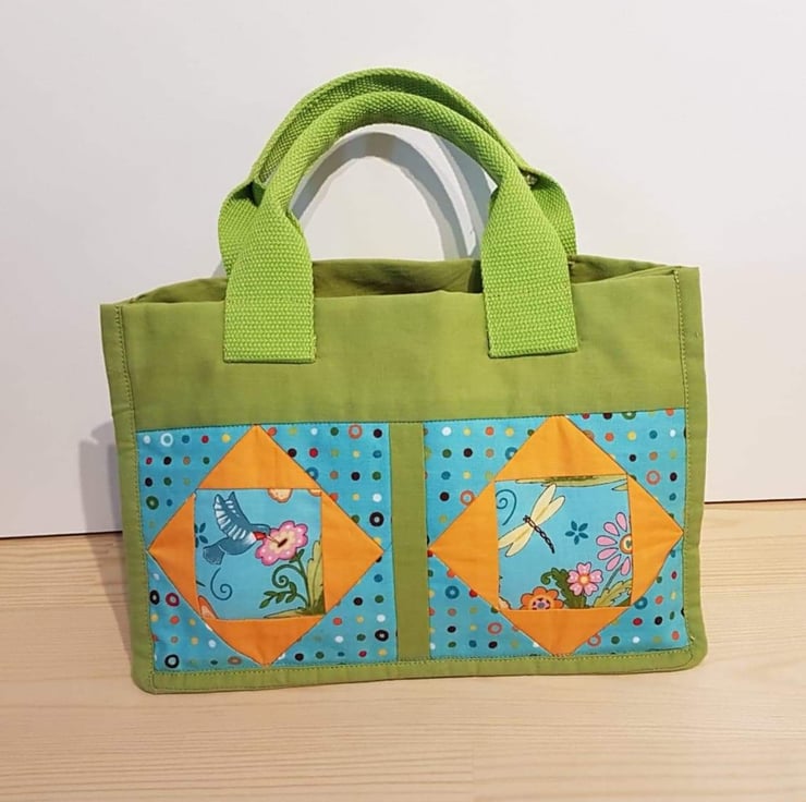 Handcrafted patchwork handbag.This is a small size handbag,suitable for lunch bag.