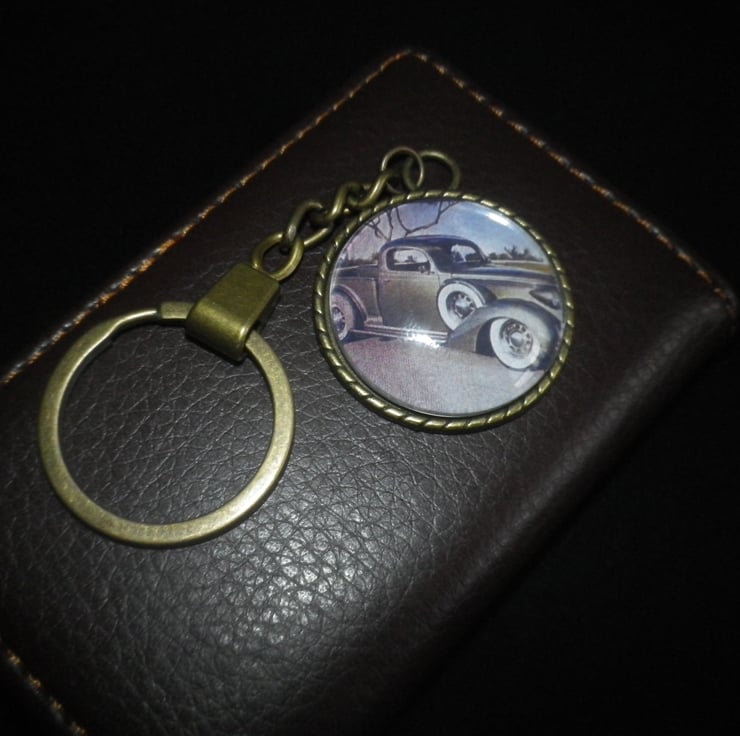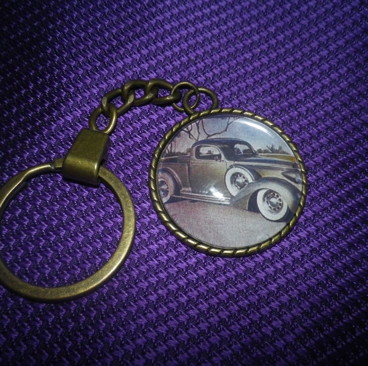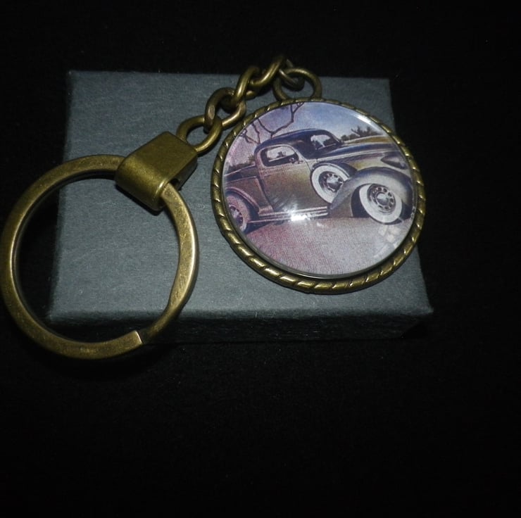 The digital images are printed on high quality 180gm professional photocard, and are mounted in a bronze vintage setting , protected by a 30mm ( 1.25" ) glass cabochon dome , and the keychains come in a neat lidded presentation