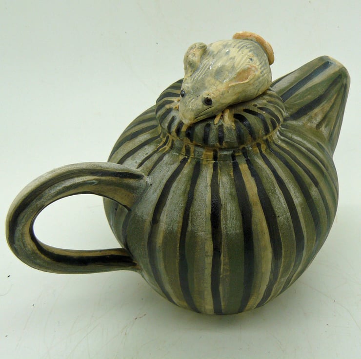 One of my favourite things to make - teapots. They are quite complex in their construction & it`s always a great challenge & good fun. The mouse, as a knob, is a cute, fun addition. Made to make you smile!