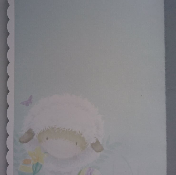 Easter Card Happy Easter Cute Woolly Lamb Daffodil and Easter Eggs