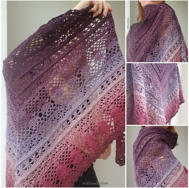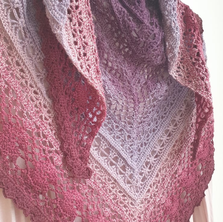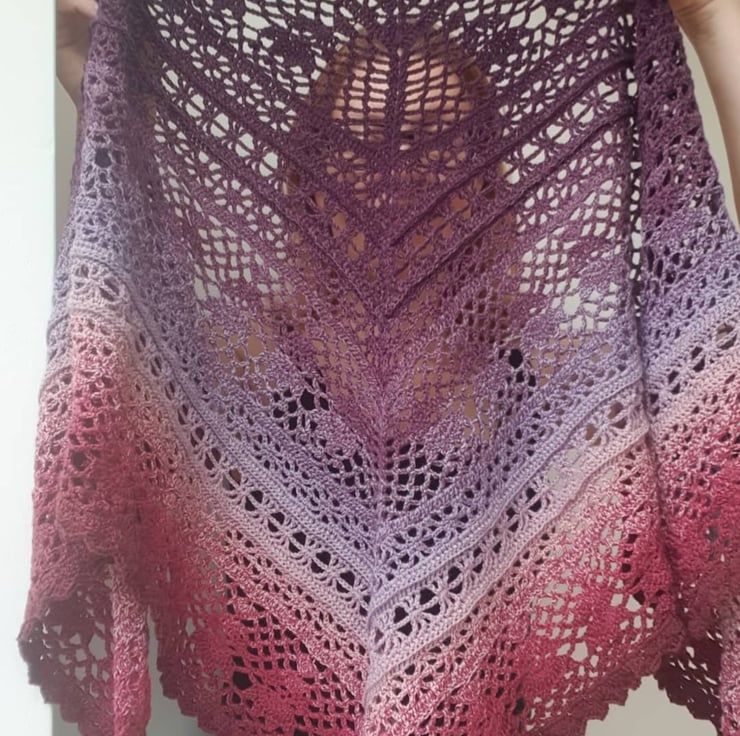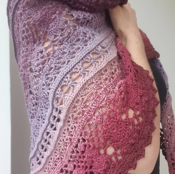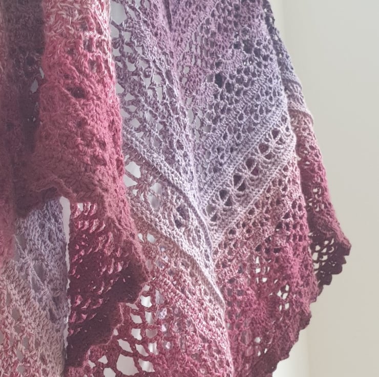 Care: hand wash in warm water with a mild detergent suitable for delicate garments, rinse. No twisting or wringing of the shawl. Roll it in a towel and let the towel absorb water. Spread the shawl flat to dry.