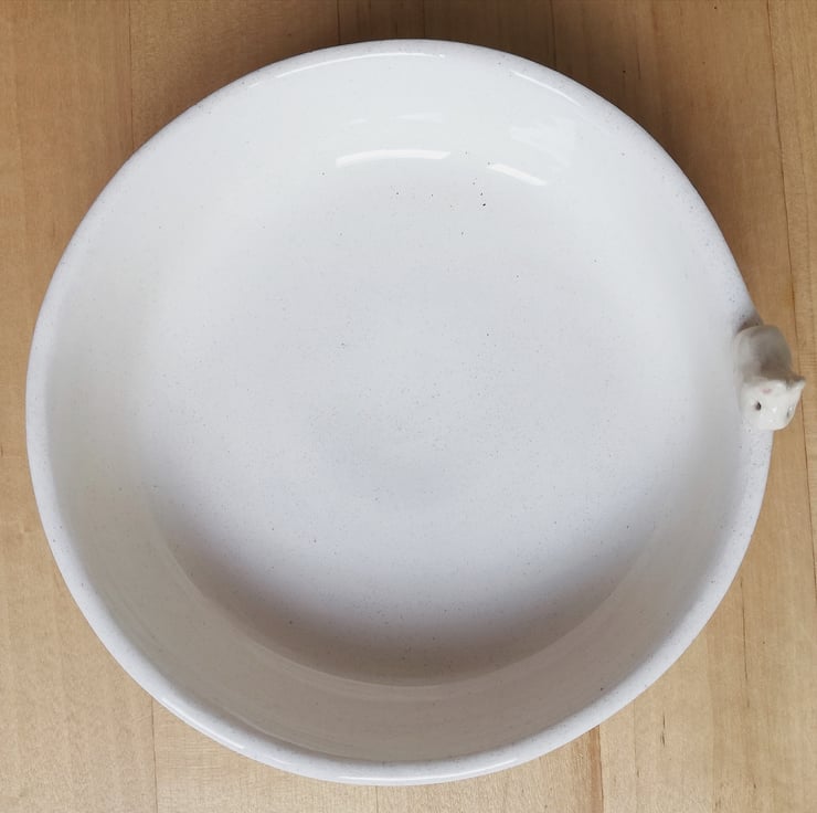 I enjoy making little individual pets to sit on the rim of pet bowls, the white rabbit sits quite nicely but has left some dirty pawprints!
