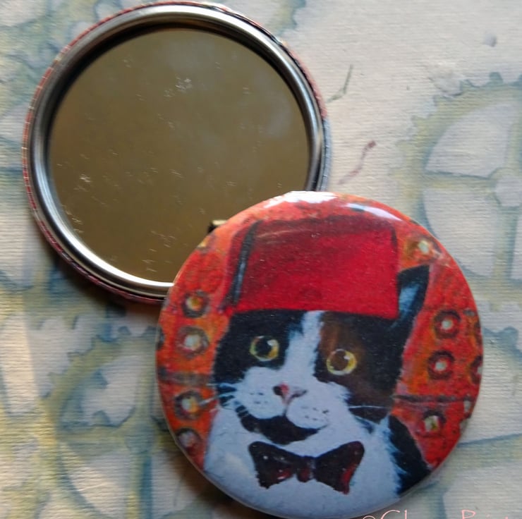 Dr Who Cat pocket mirror approx size 58mm (1 included).