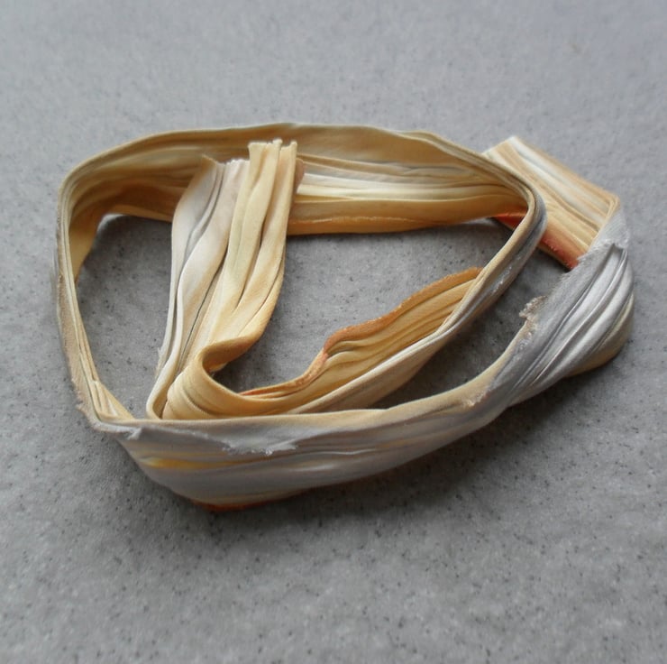 Shibori silk ribbon colour sandcastle measures approx. 17 inches in length