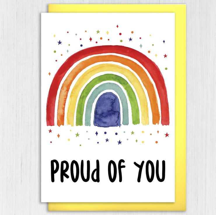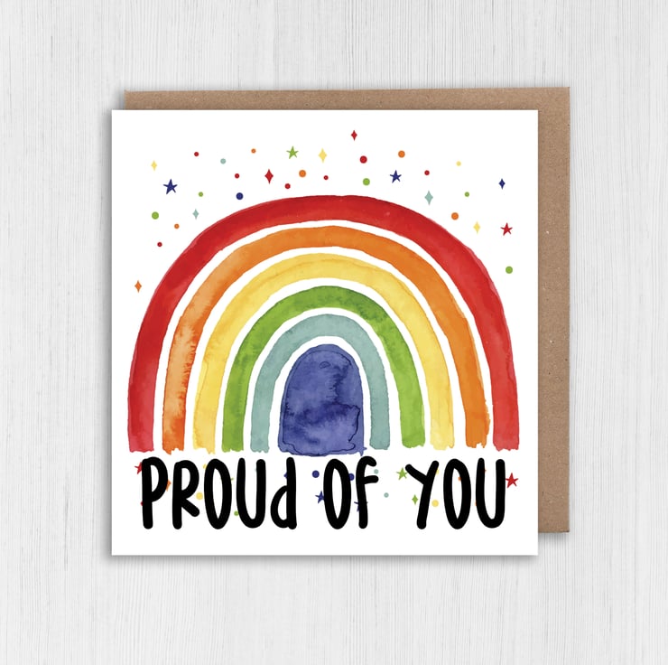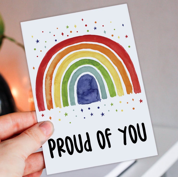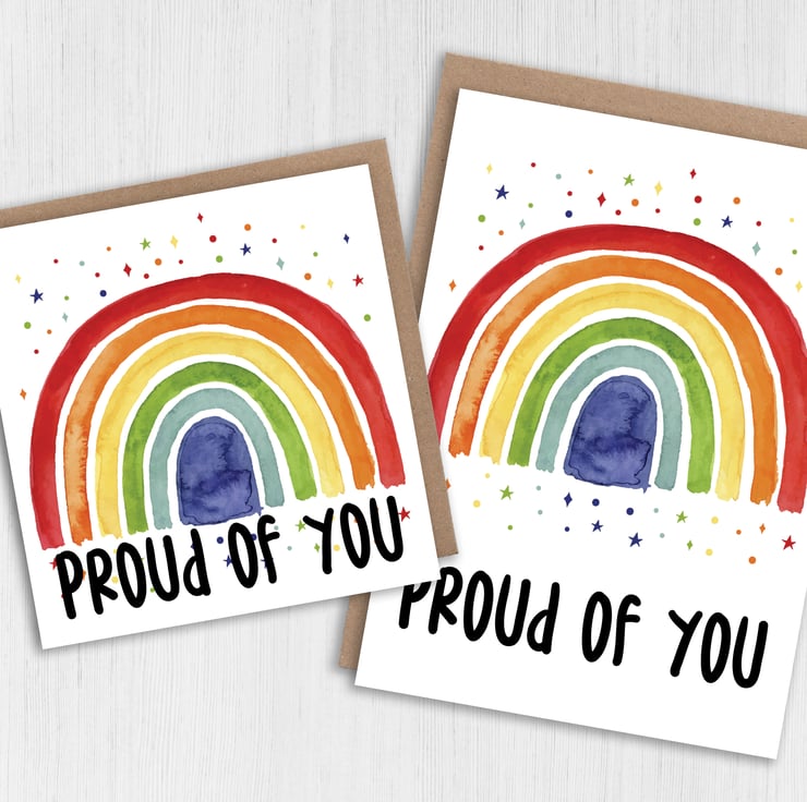 Congratulations, well done, graduation, new job rainbow card: Proud of you (Size A6/A5/A4/Square 6x6")