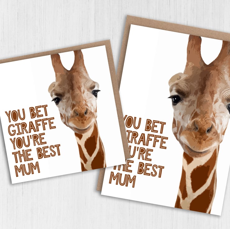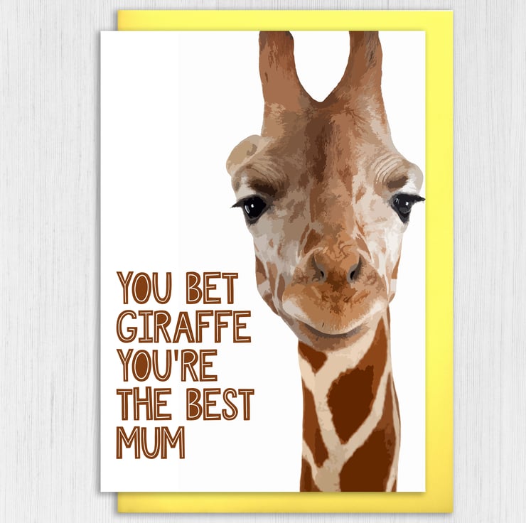 Funny giraffe Mother's Day card for mum, mom, stepmum, stepmom: You bet giraffe, you bet your ass (Size A6/A5/A4/Square 6x6")