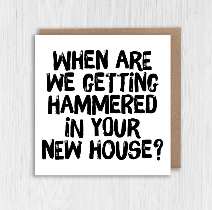 Alcohol-themed new home, new house, housewarming, moving house, moving home card: Hammered in your new house (Size A6/A5/A4/Square 6x6")
