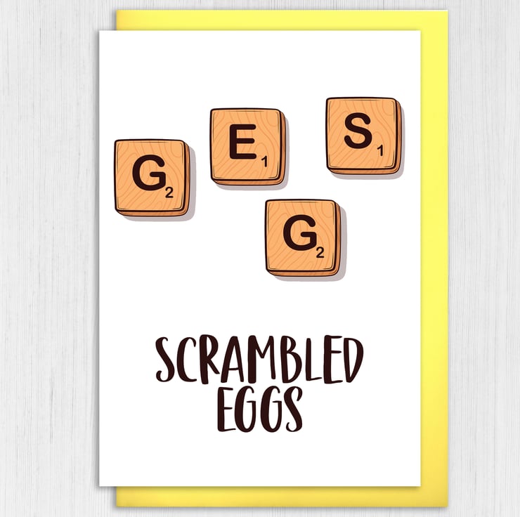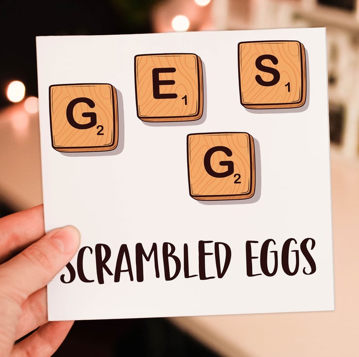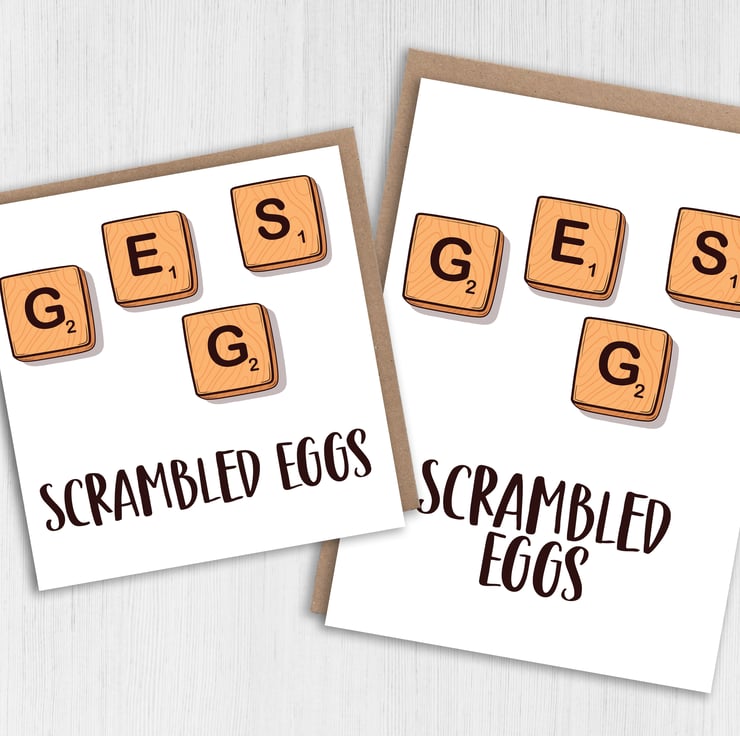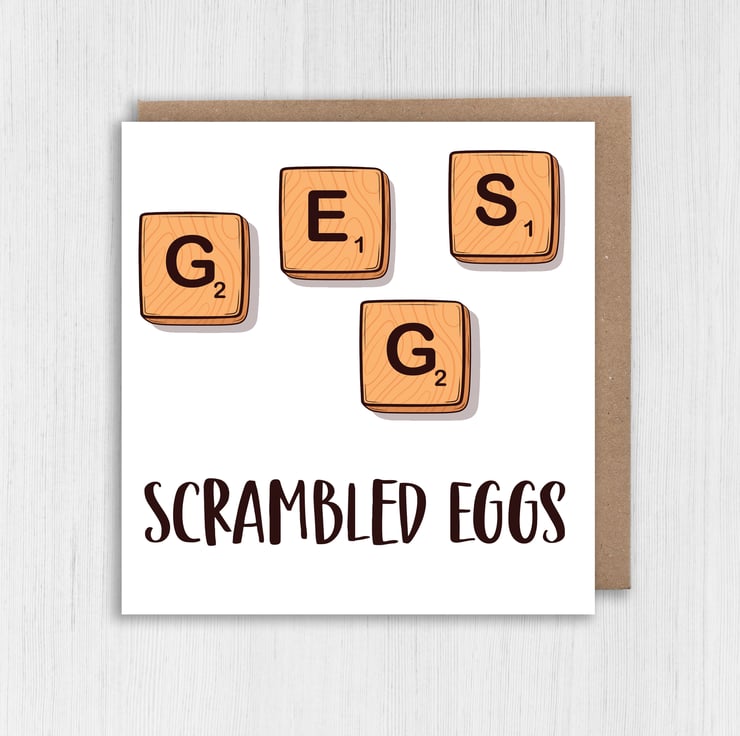 Easter card, Scrabble letter style: Scrambled eggs (Size A6/A5/A4/Square 6x6")