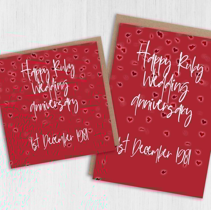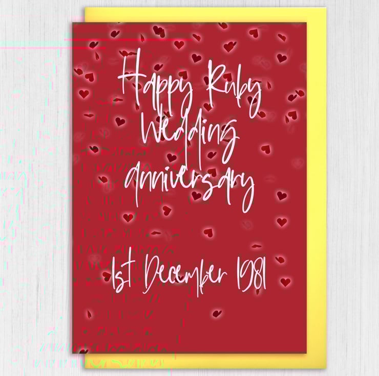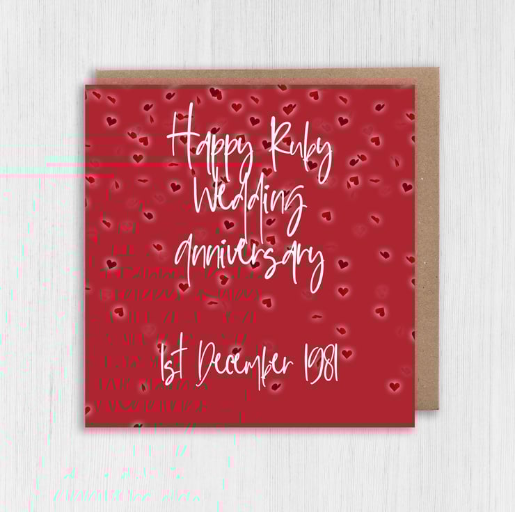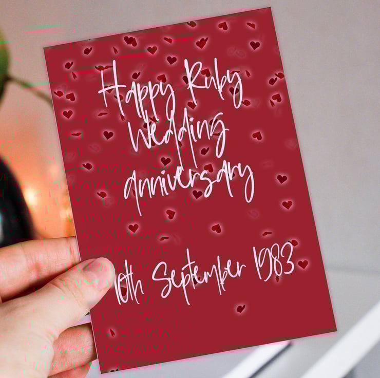 Personalised Ruby (40th/40 years) anniversary card: Personalised with date (Size A6/A5/A4/Square 6x6")