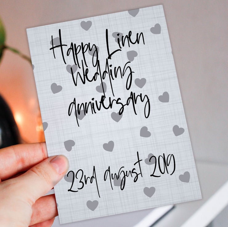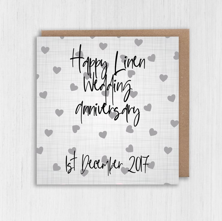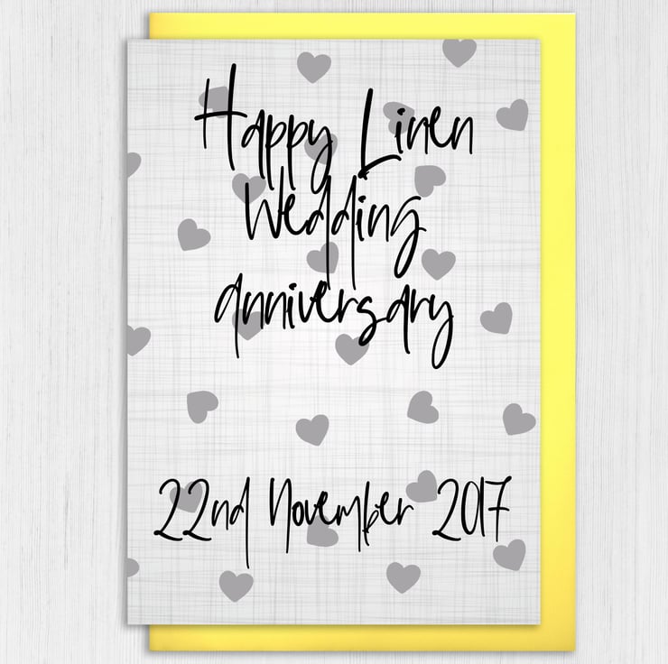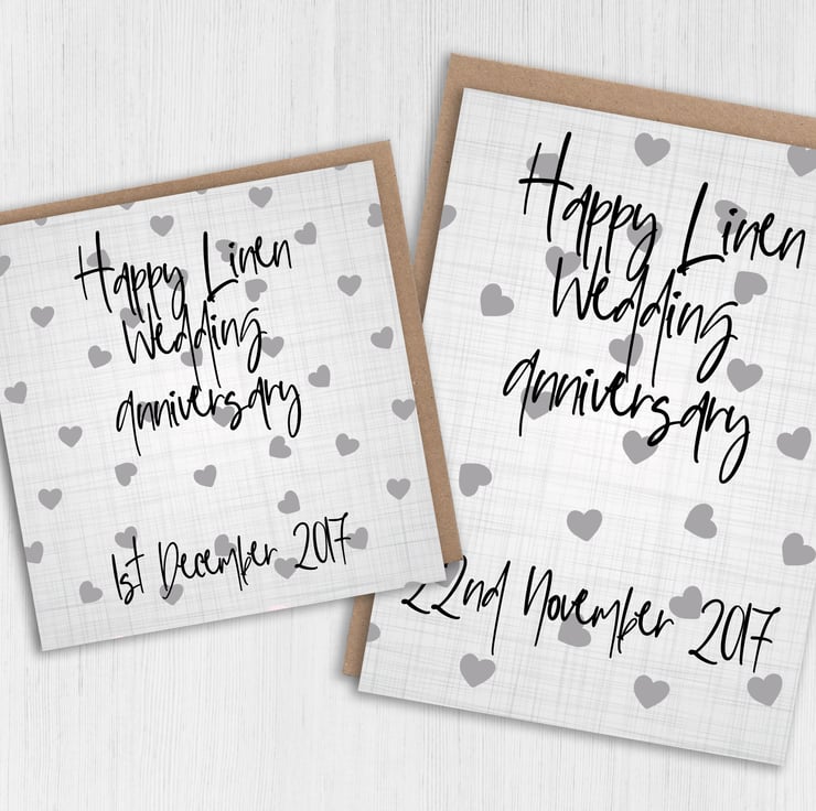 Personalised Linen (4th/four year) anniversary card: Personalised with date (Size A6/A5/A4/Square 6x6")