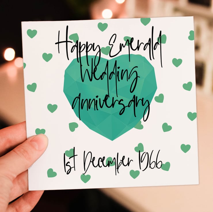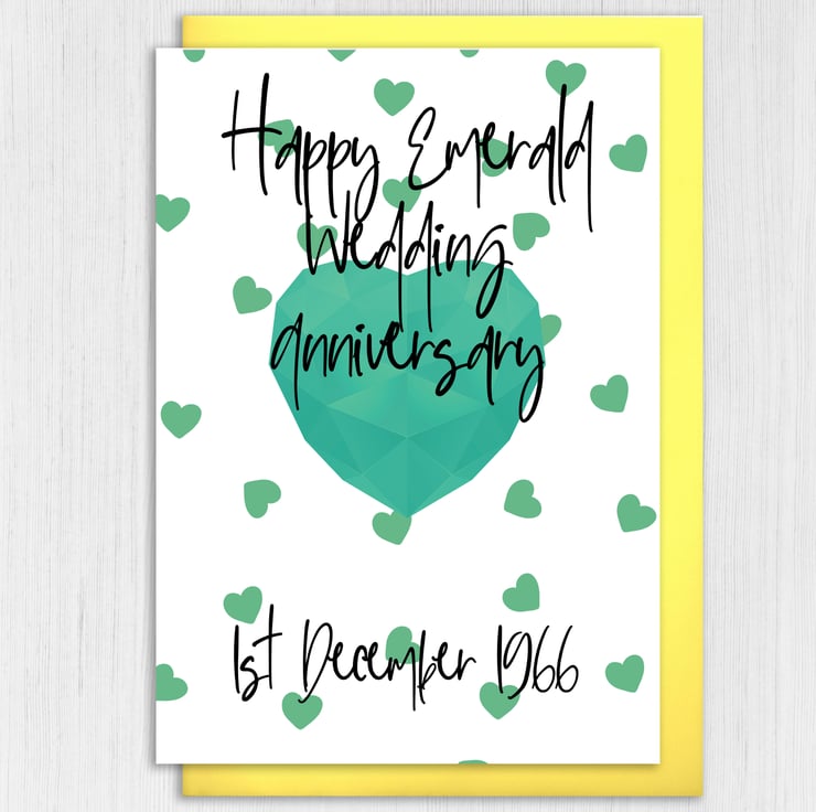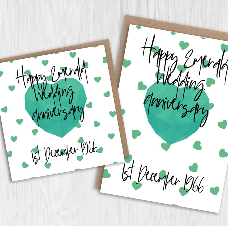 Personalised Emerald (55th/55 years) anniversary card: Personalised with date (Size A6/A5/A4/Square 6x6")