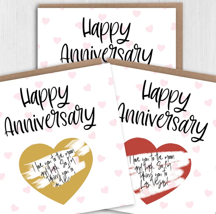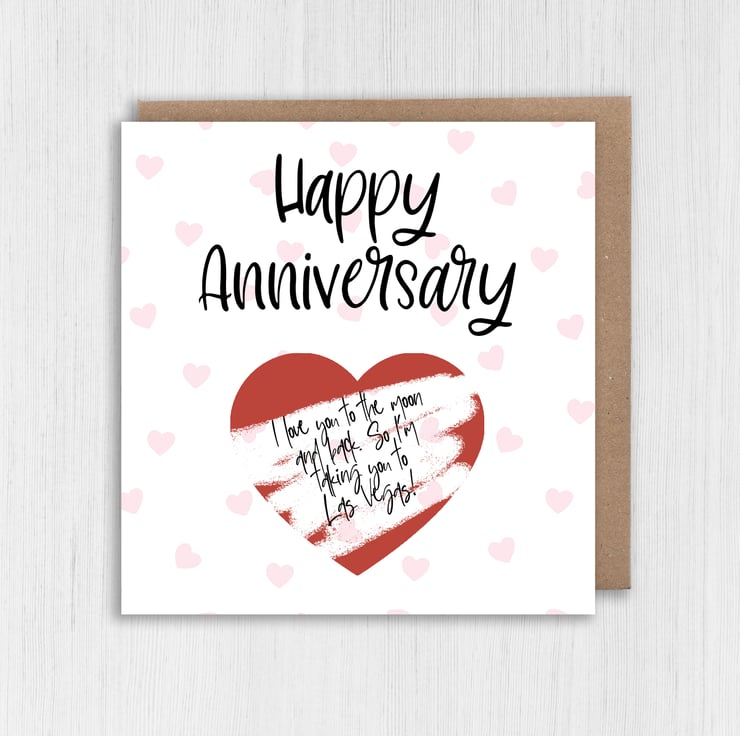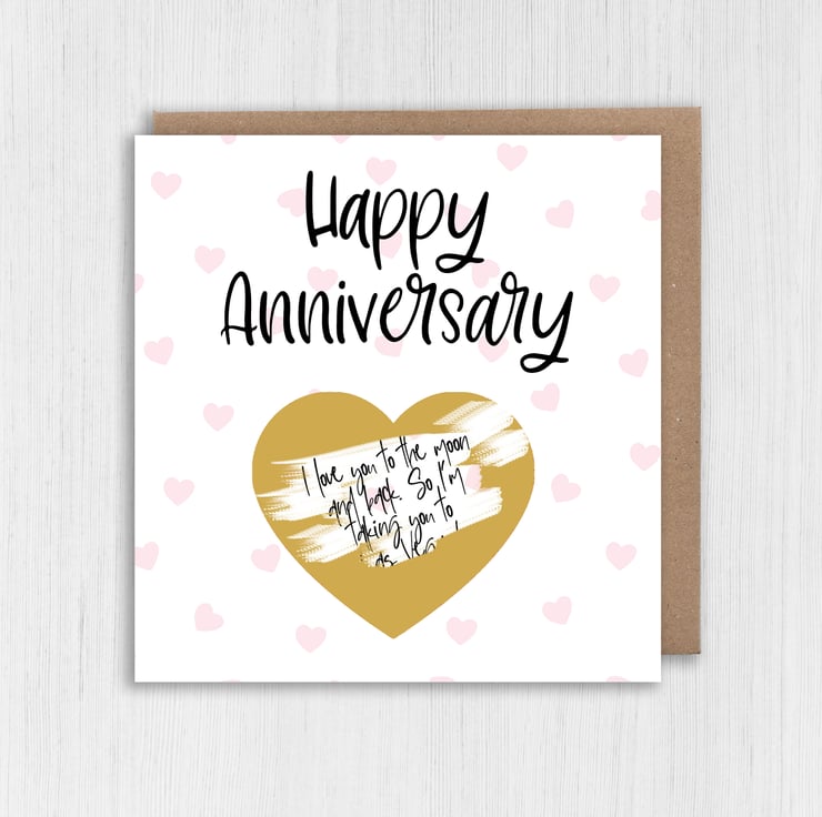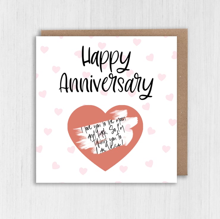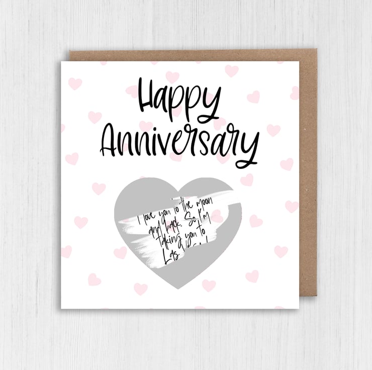 Personalised scratch off and reveal heart card: Happy Anniversary - with any message and choice of heart colour