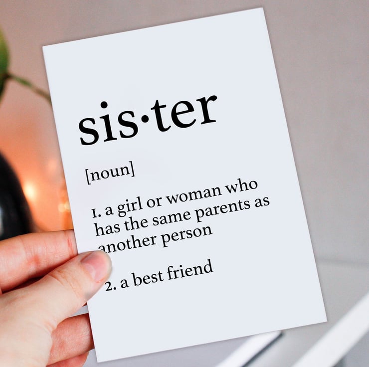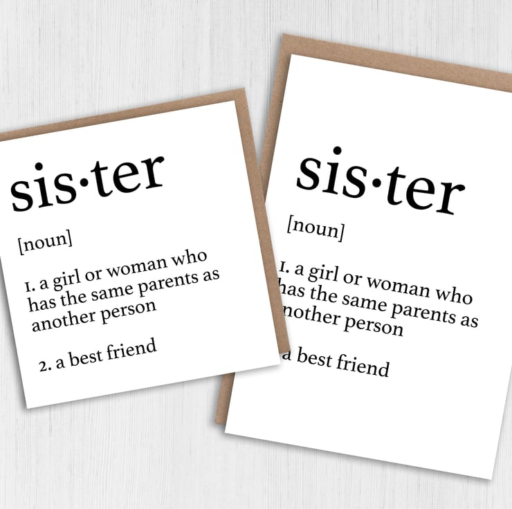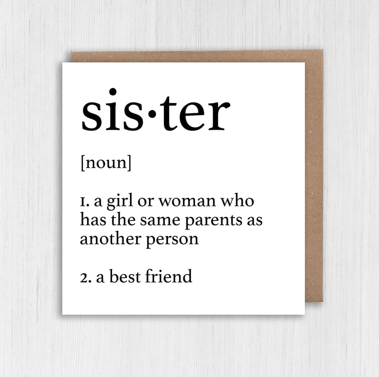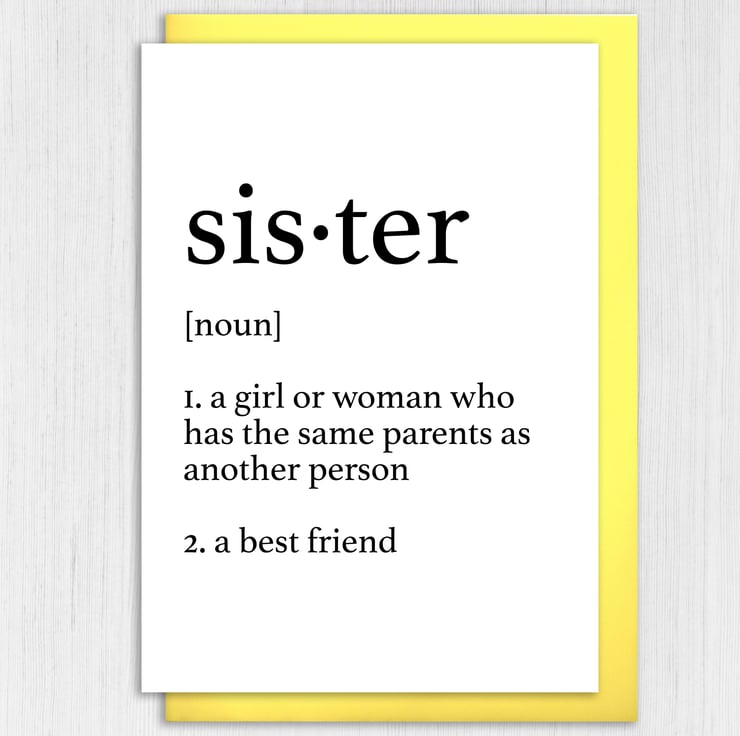Sister birthday card: Dictionary definition of sister (Size A6/A5/A4/Square 6x6")