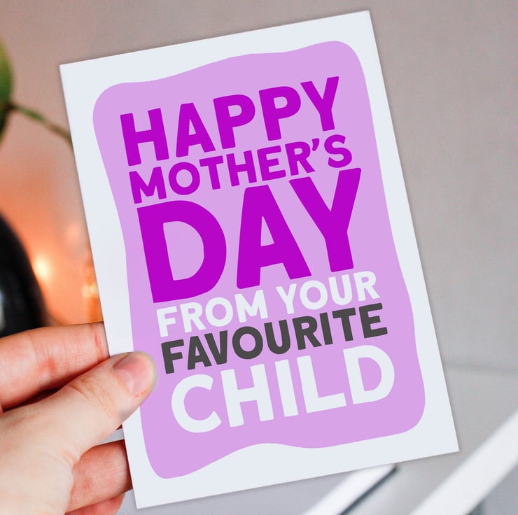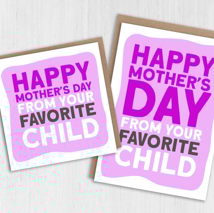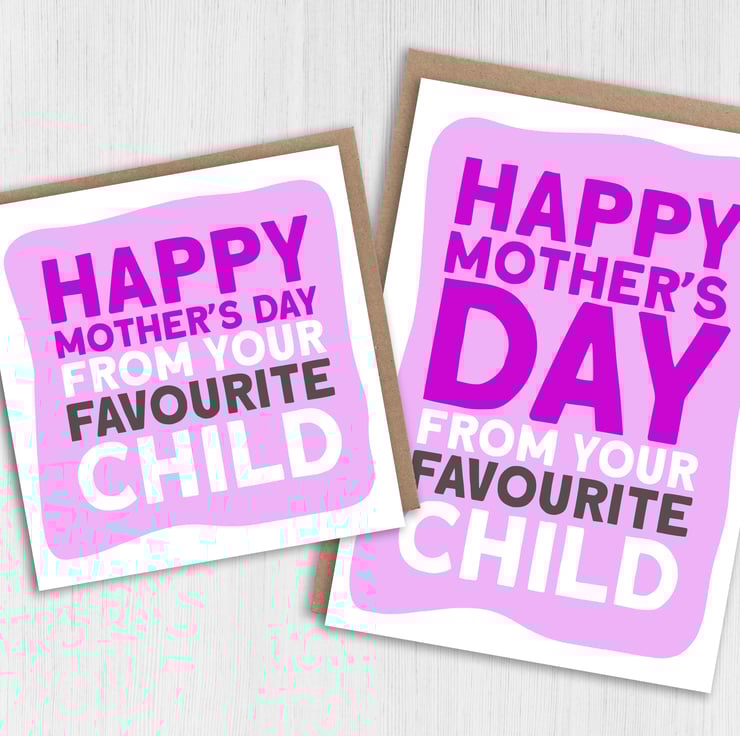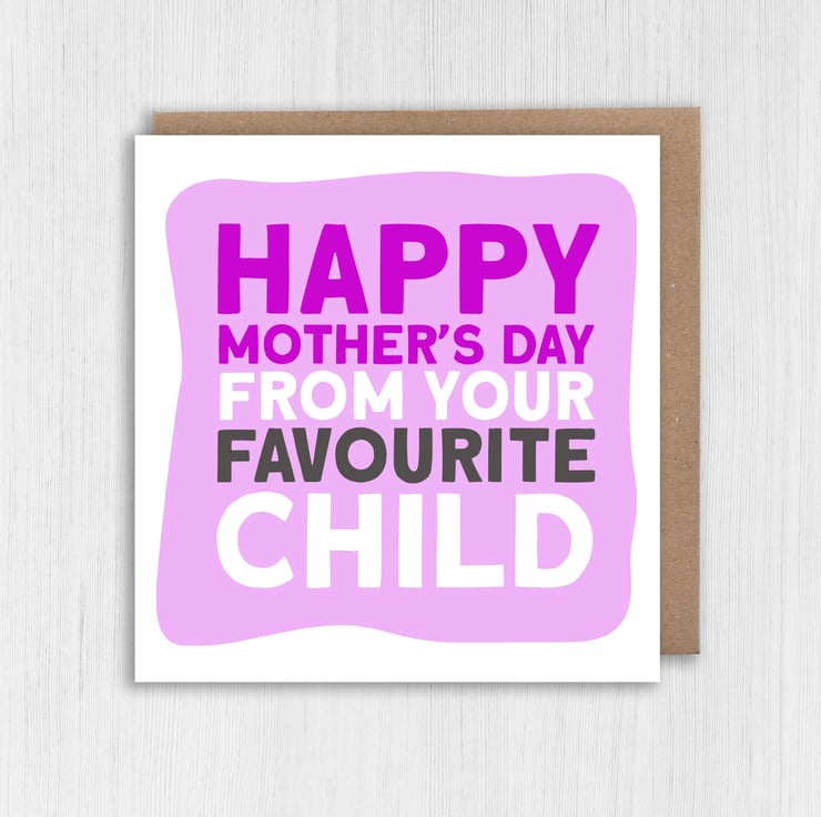 Funny Mother's Day card for mum, mom, mam, mother: From your favourite, favorite child (Size A6/A5/A4/Square 6x6")
