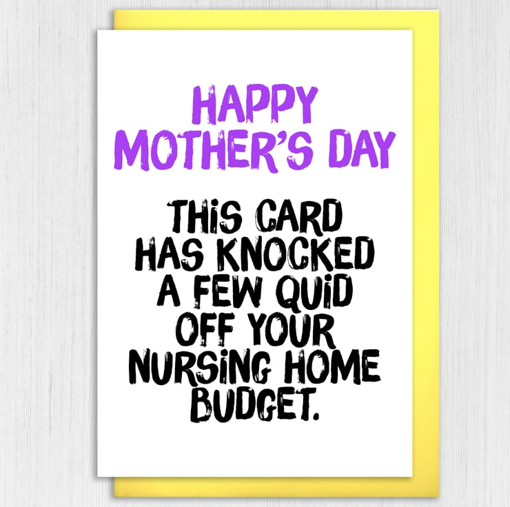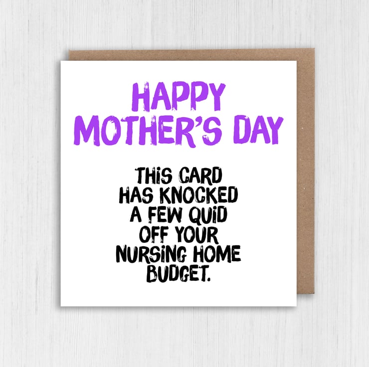 Funny, rude Mother's Day card for mum, mom, mam, mother: Knocked a few quid off your nursing home budget (Size A6/A5/A4/Square 6x6")