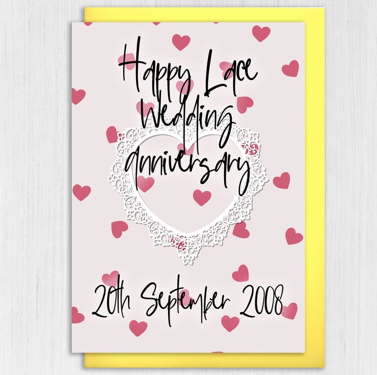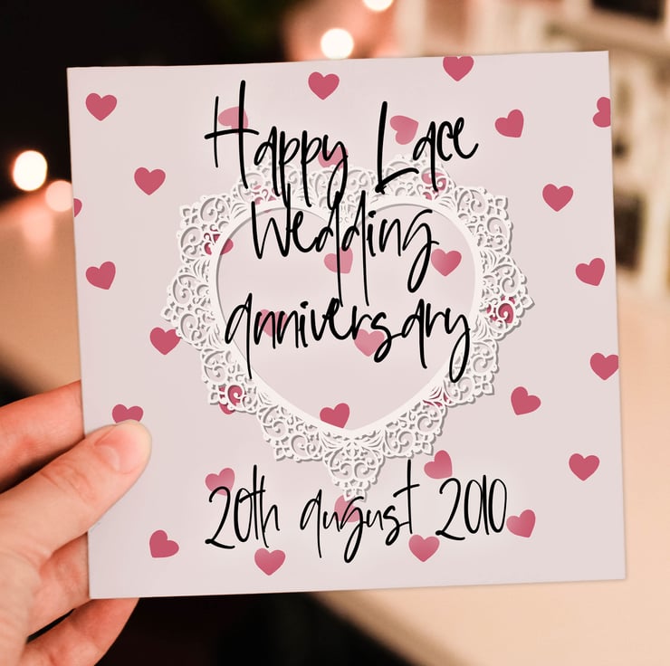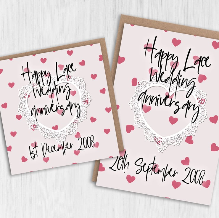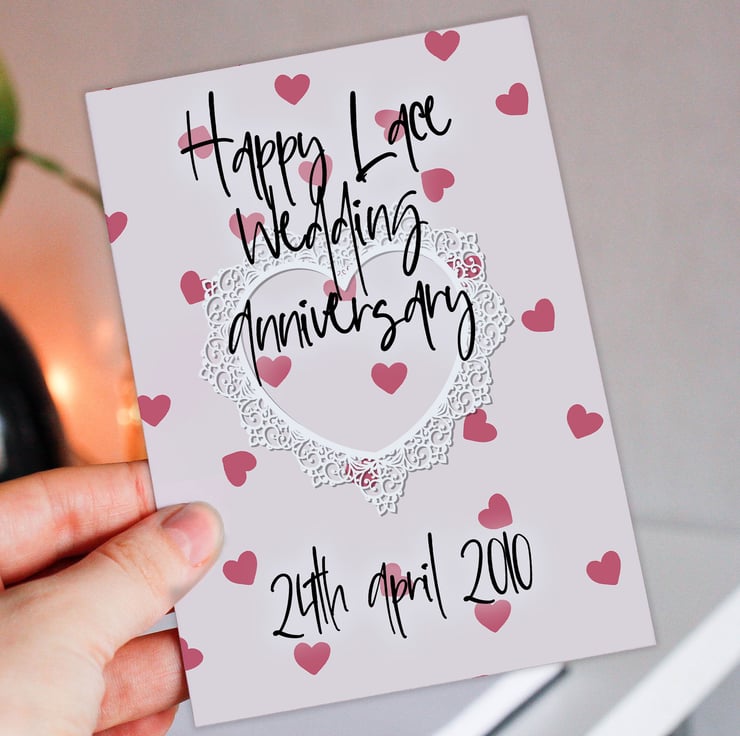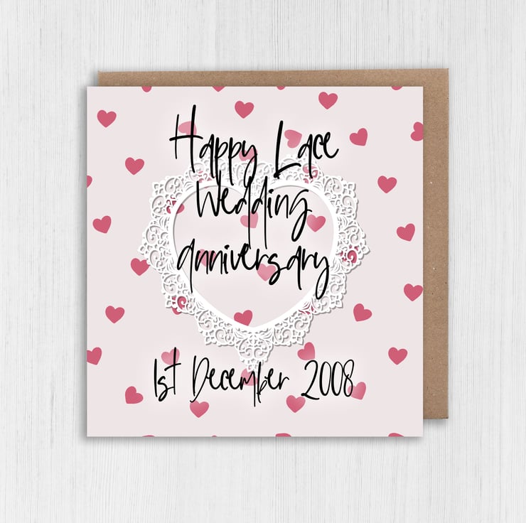 Personalised Lace (13th/13 years) anniversary card: Personalised with date (Size A6/A5/A4/Square 6x6")