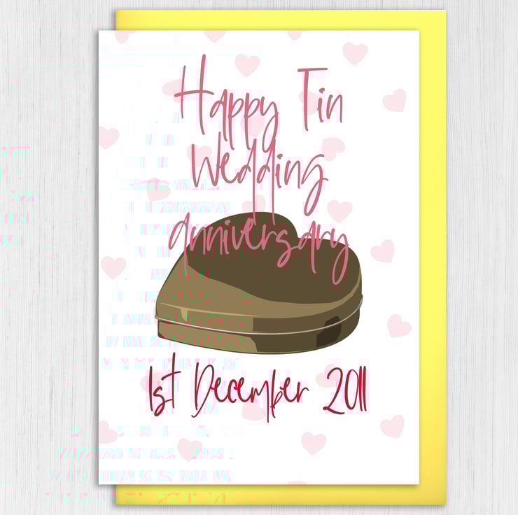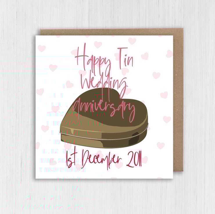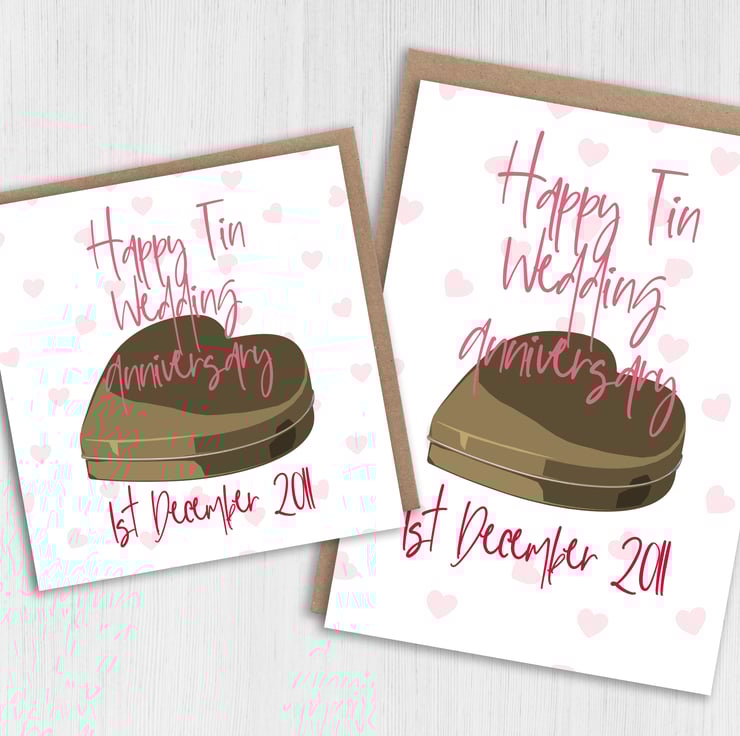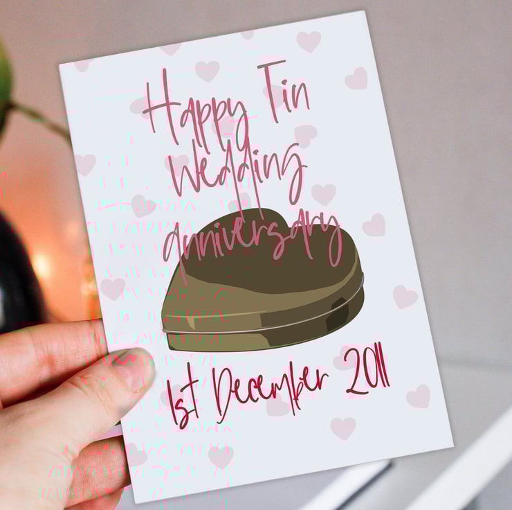 Personalised Tin (10th/10 years) anniversary card: Personalised with date (Size A6/A5/A4/Square 6x6")
