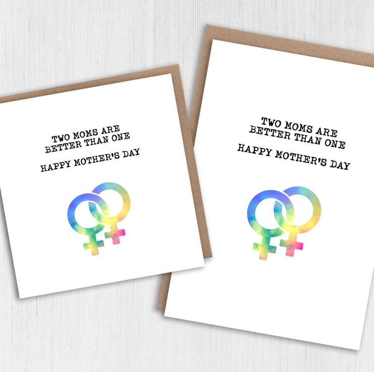 LGBTQ Mother's Day card for mum, mom, mam, mother, lesbian, same-sex parents: Two mums, moms are better than one Size A6/A5/A4/Square 6x6"
