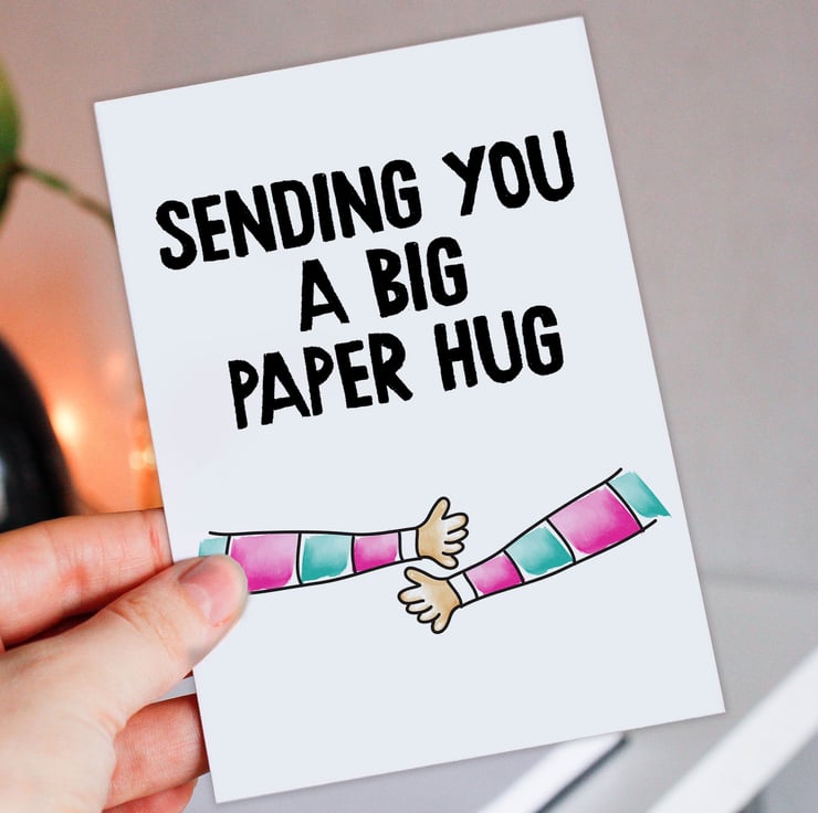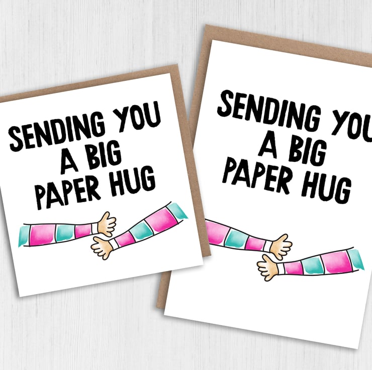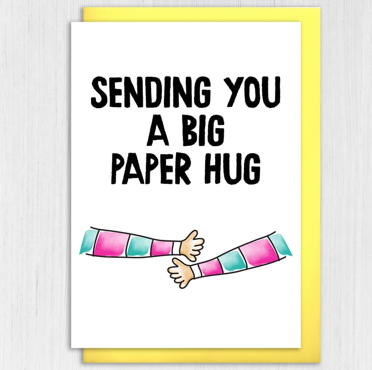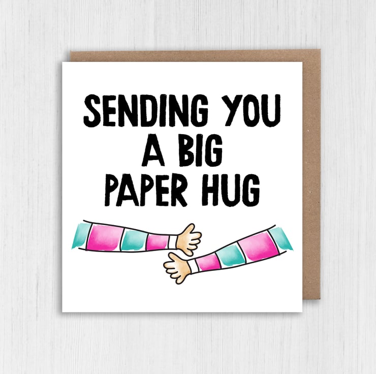 Thinking of you, bereavement, sympathy, get well card: Sending you a big paper hug (Size A6/A5/A4/Square 6x6")