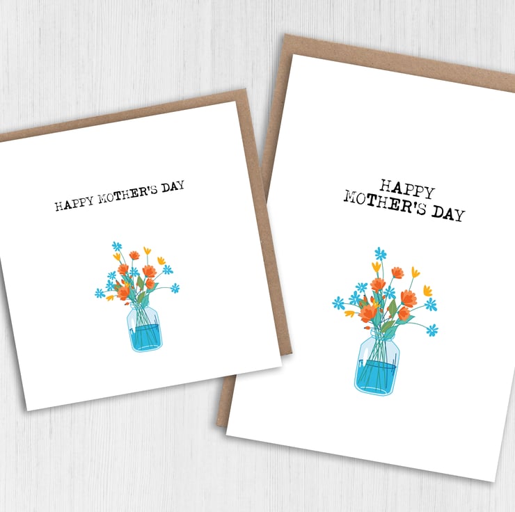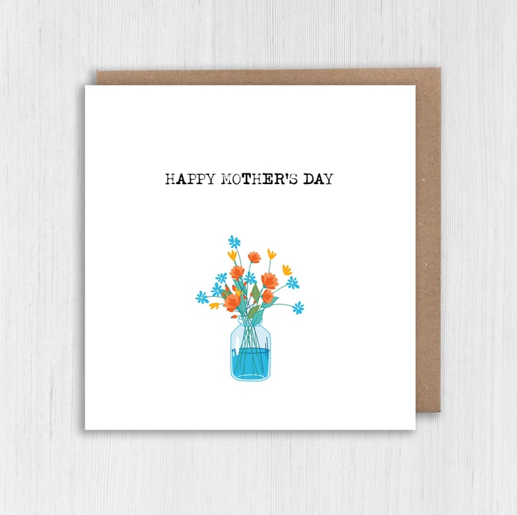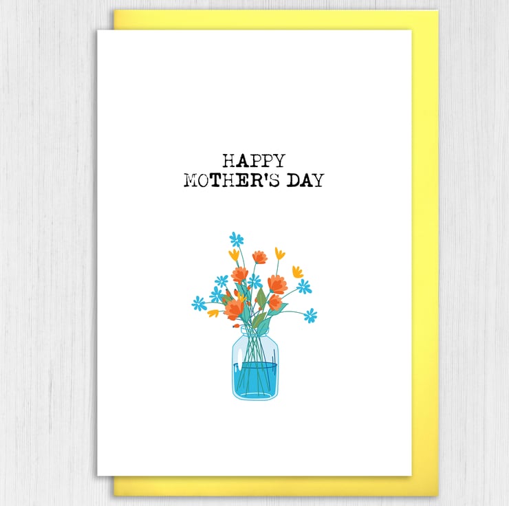 Happy Mother's Day card for mum, mom, mam, mother: Flowers in vase (Size A6/A5/A4/Square 6x6")