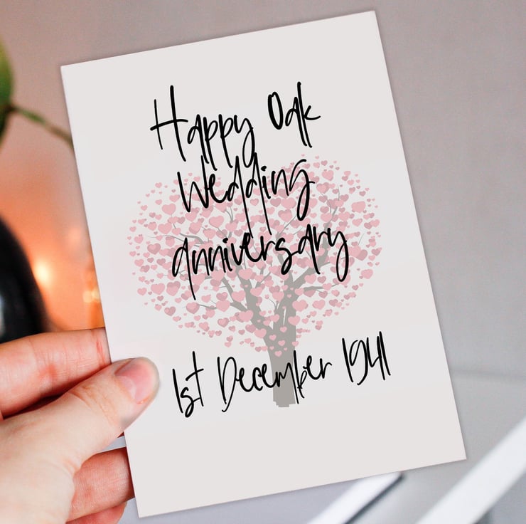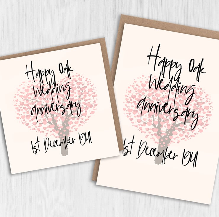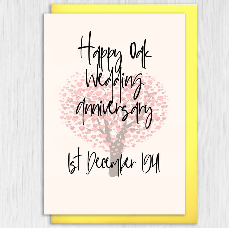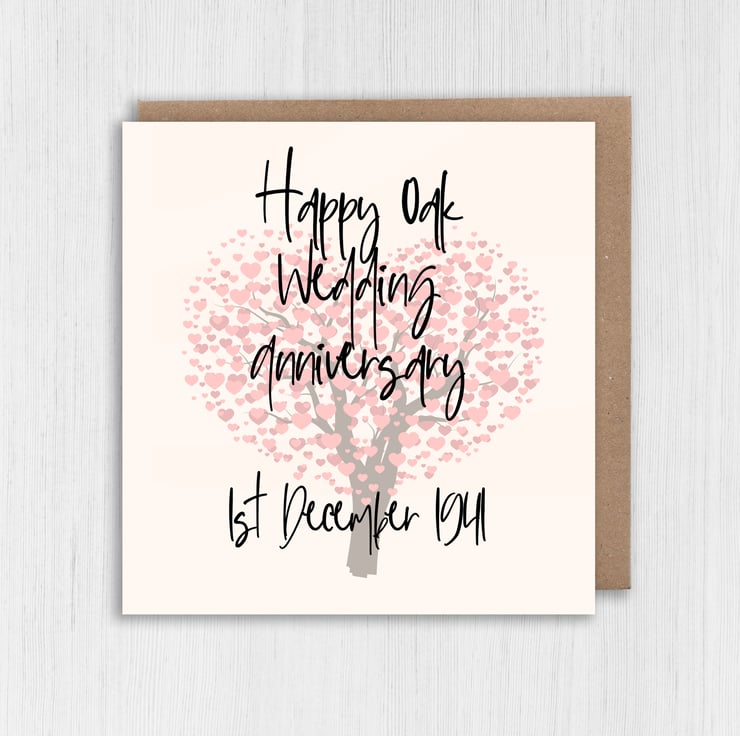 Personalised Oak (80th/80 years) anniversary card: Personalised with date (Size A6/A5/A4/Square 6x6")