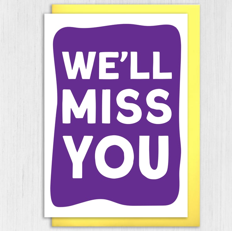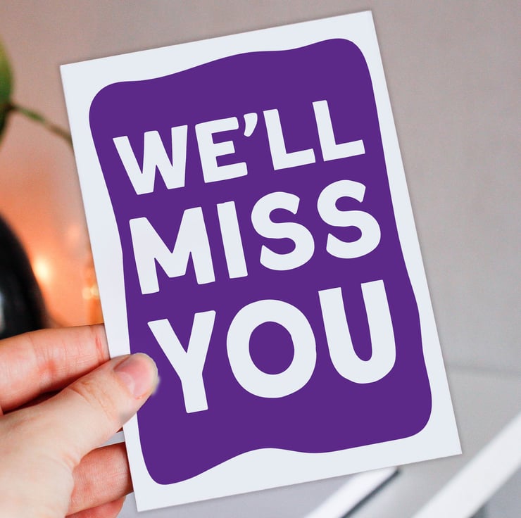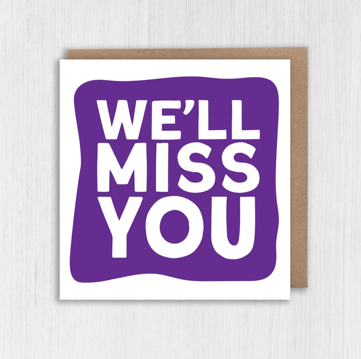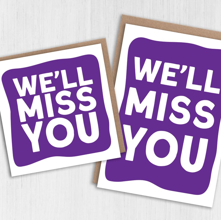 Goodbye, good luck, leaving, new job, miss you, bye card: We'll miss you (Size A6/A5/A4/Square 6x6")