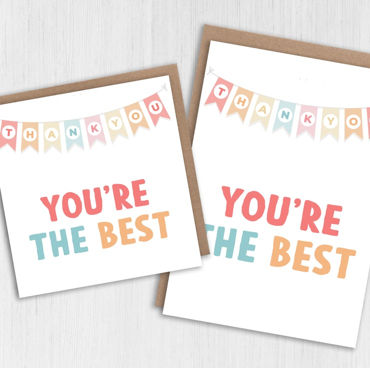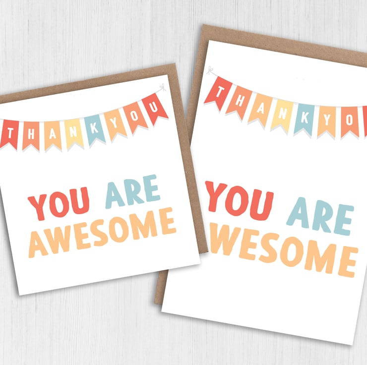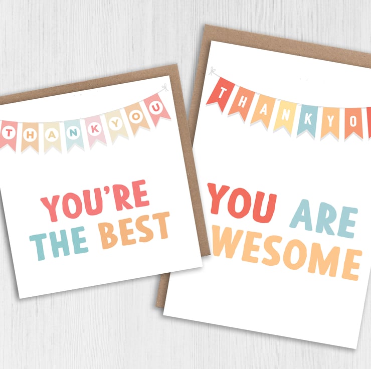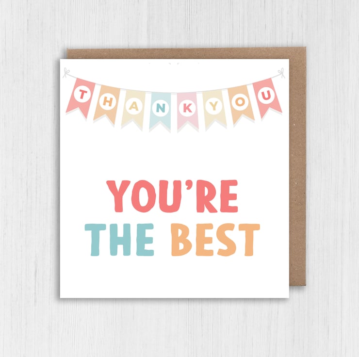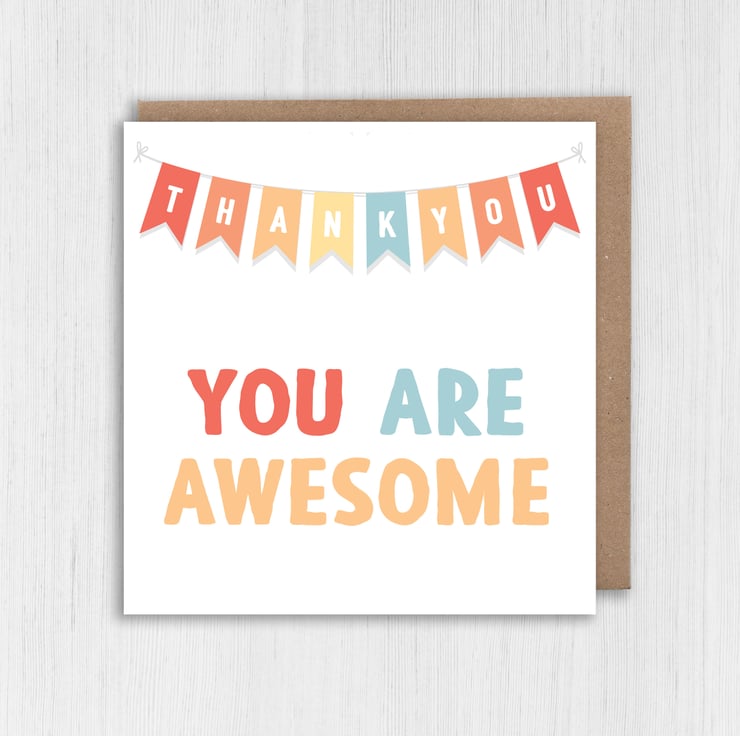Thank you, thanks, with thanks, gratitude, you are awesome, you're the best bunting card (Size A6/A5/A4/Square 6x6")