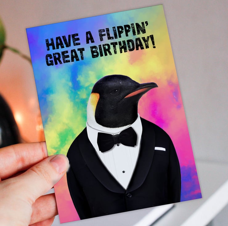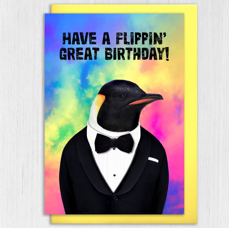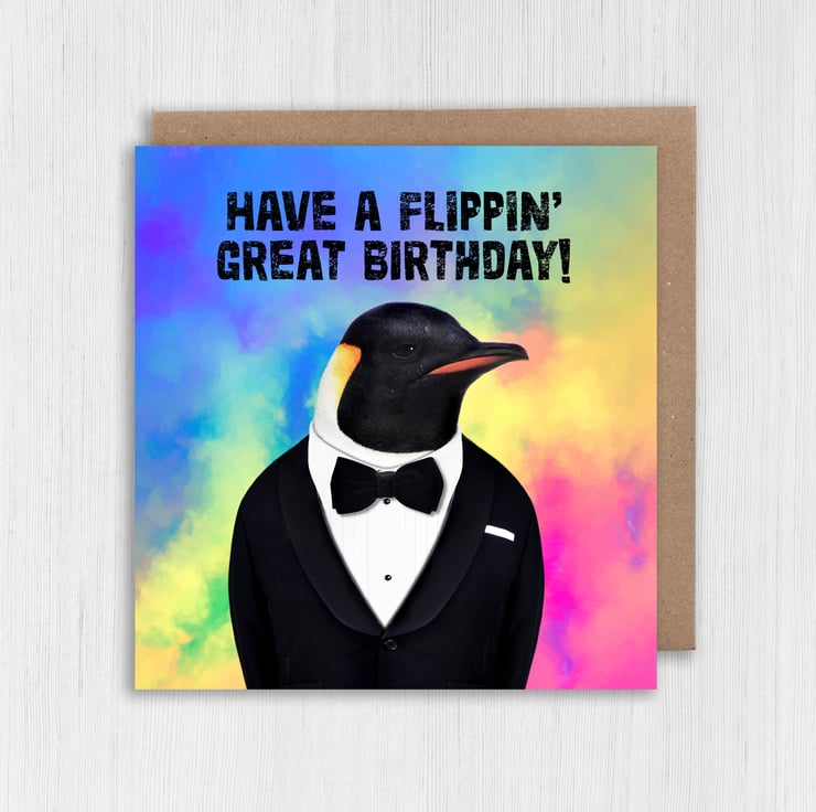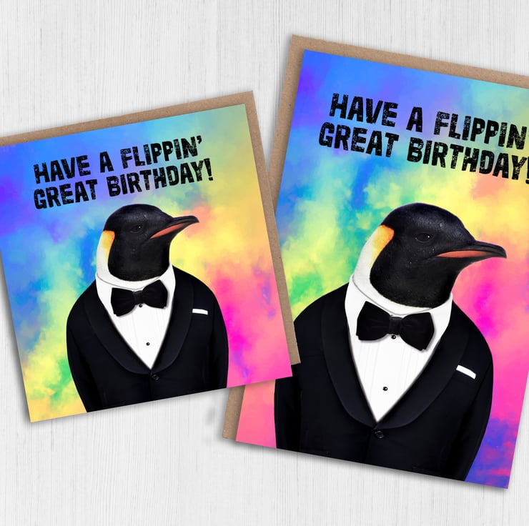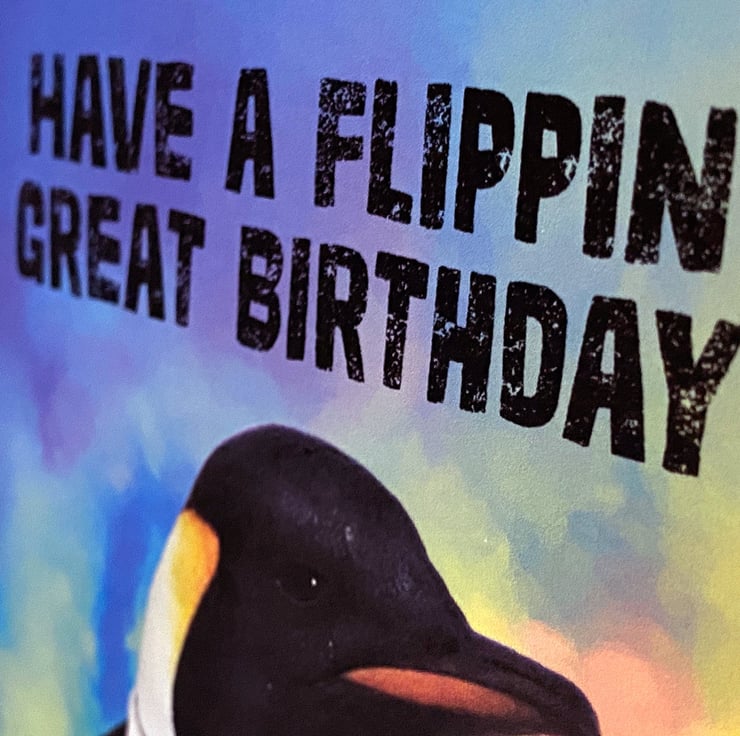 Penguin birthday card: Flippin' great birthday - Animalyser