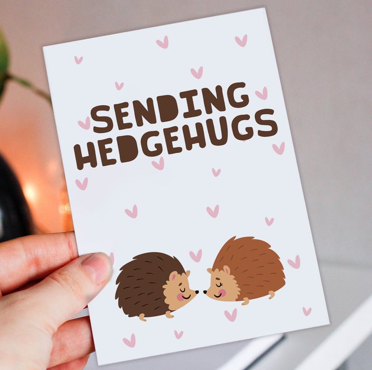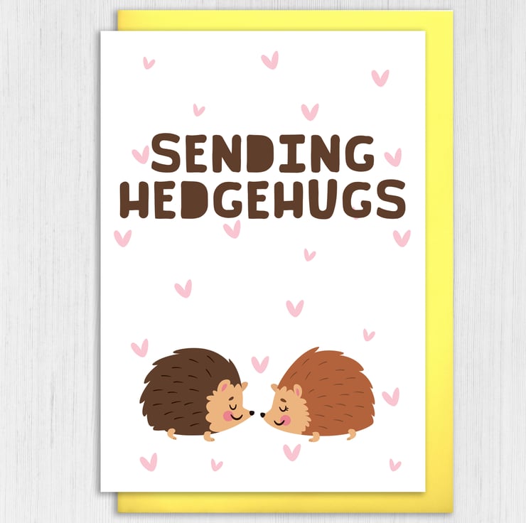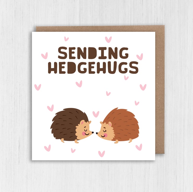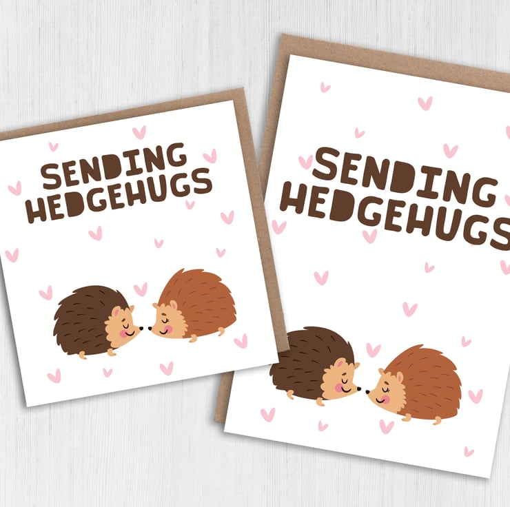 Hedgehogs thinking of you, sympathy, bereavement, get well card: Sending hedgehugs (Size A6/A5/A4/Square 6x6")