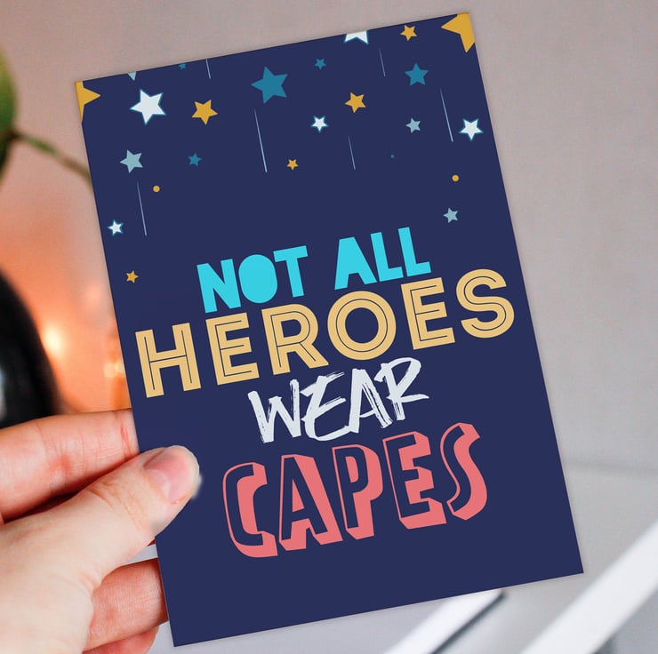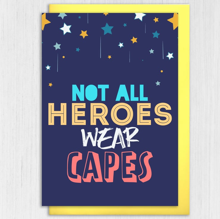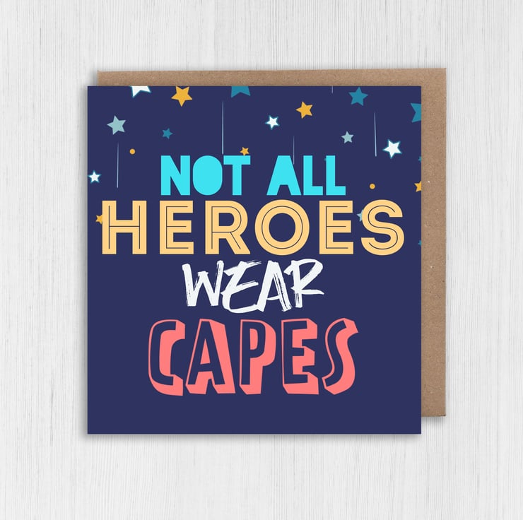 Thank you, congratulations, congrats, superhero, gratitude card: Not all heroes wear capes (Size A6/A5/A4/Square 6x6")